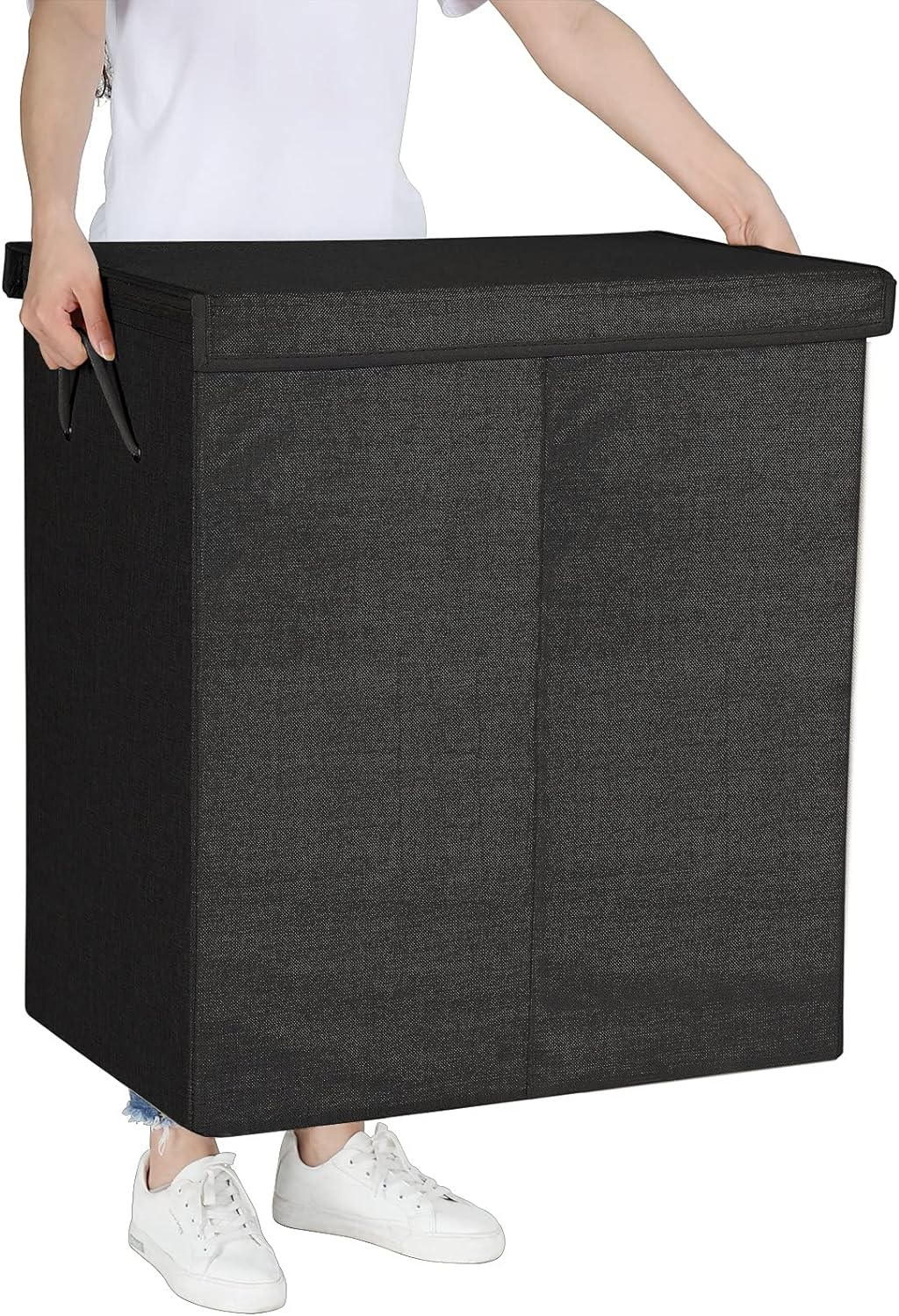 Specificatii: Culoare: negru Material: Tesatura Linenette, MDF (placi de fibre de densitate medie), bumbac, tesatura netesutaP Marimea produsului: 60 x 36 x 66 cm (L x l x a)P Greutatea produsului: 4,9 kg Capacitate de incarcare statica: 20 kg Despre acest articol Capacul cosului poate fi deschis si inchis cu o singura mana pentru a va facilita depozitarea rufelor. Capacul previne mirosurile neplacute si va protejeaza rufele de praf.Cu o dimensiune de 60 x 36 x 66 cm (L x l x i), acest cos de rufe are un volum de 142L. Suficient spatiu pentru prosoape, cearceafuri, perne si multe altele. Cele 2 compartimente va permit sa sortati totul in functie de culori.Suprafata acestui cos de rufe din tesatura de in 900D este durabila. Placa MDF cu grosimea de 2,5 mm este puternica si stabila. Capacitatea de incarcare a acestui cos este de 20 kg.Geanta din bumbac gros de 160 gsm are inchidere cu Velcro. Este detasabil si se indeparteaza cu usurinta pentru a fi dus in spalatorie sau pus direct in masina de spalat.Cosul de rufe poate fi pliat pentru a economisi spatiu atunci cand nu este utilizat. Cu manerele din bumbac de pe laterale, poate fi transportat cu usurinta.