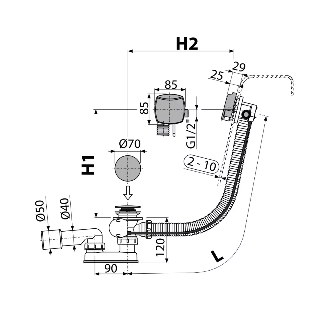 Evacuare cada Alca, universala, pop up, 800 mm, 48.6 l/min, crom, A564CRM1-80