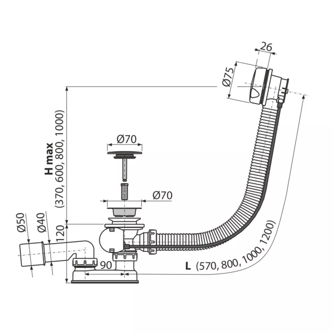 Evacuare cada AlcaDrain, universala, sifon, ventil, alb, A51BM