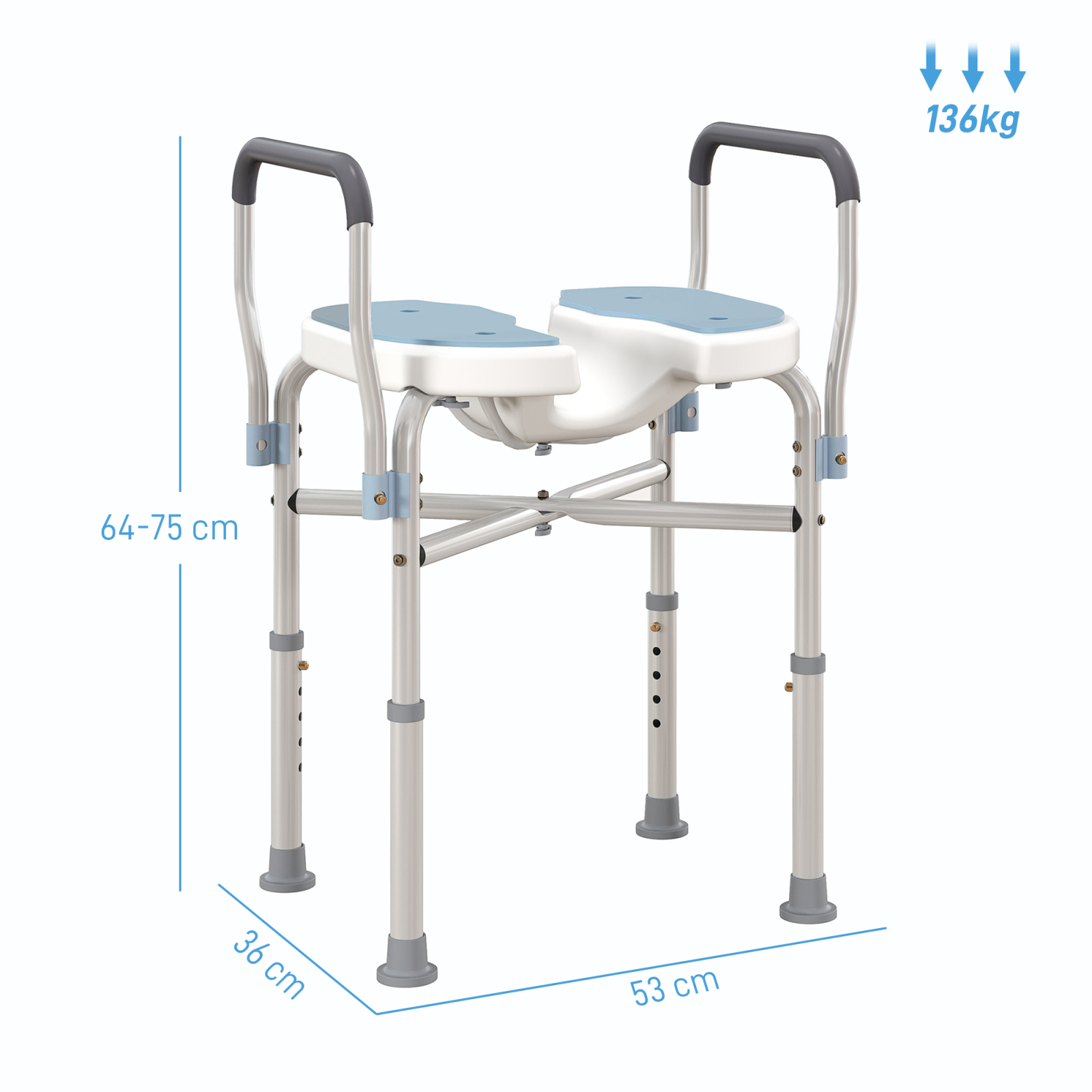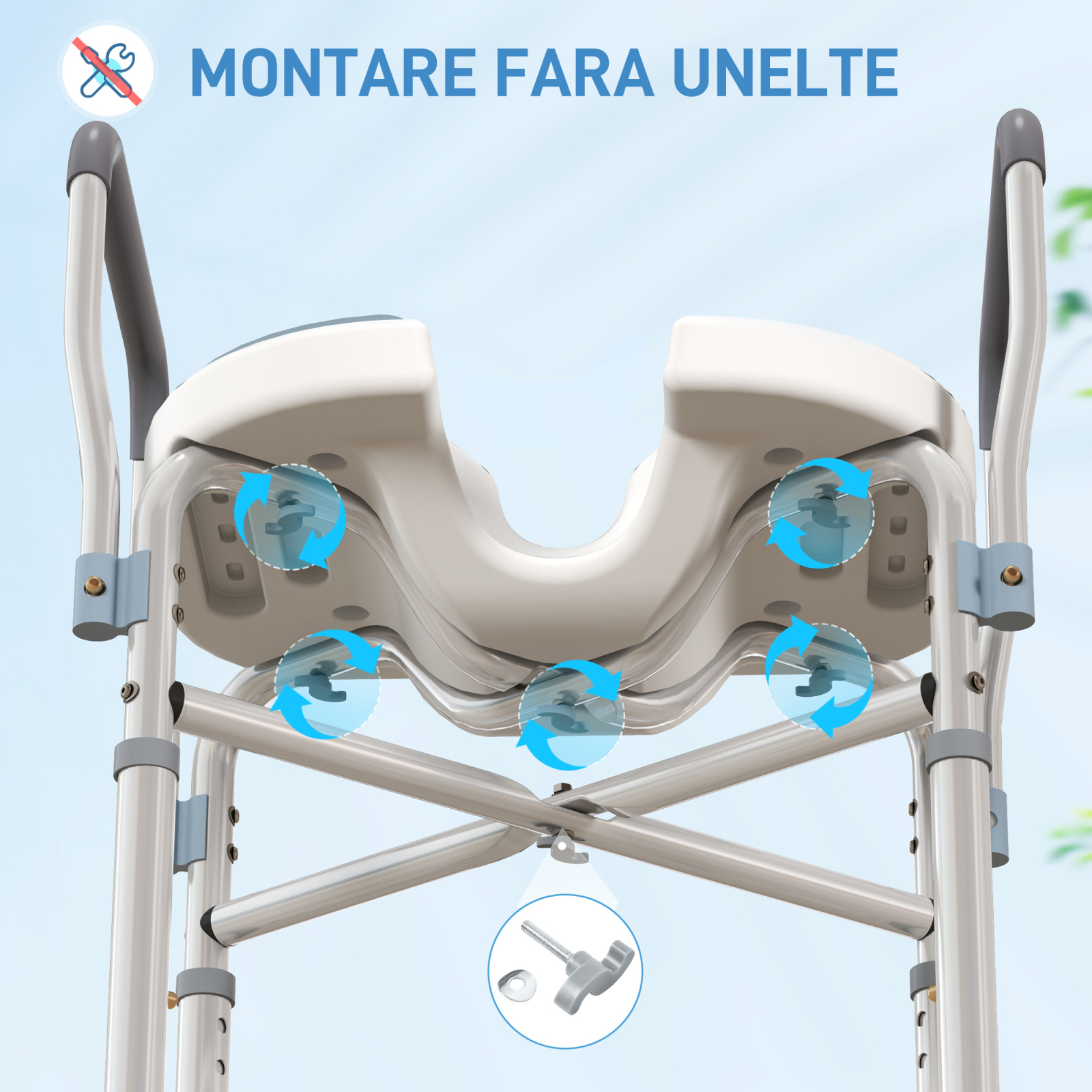 Scaunul pentru dus [BRAND NAME] ofera confort si siguranta datorita functionalitatilor sale gandite pentru cei care au dificultati in a sta in picioare. Deschiderea centrala a scaunului faciliteaza curatarea si igiena personala, in timp ce perna scaunului il face confortabil. inaltimea reglabila pe 5 nivele diferite permite adaptarea scaunului de dus la fiecare persoana, facandu-l mai functional si confortabil.