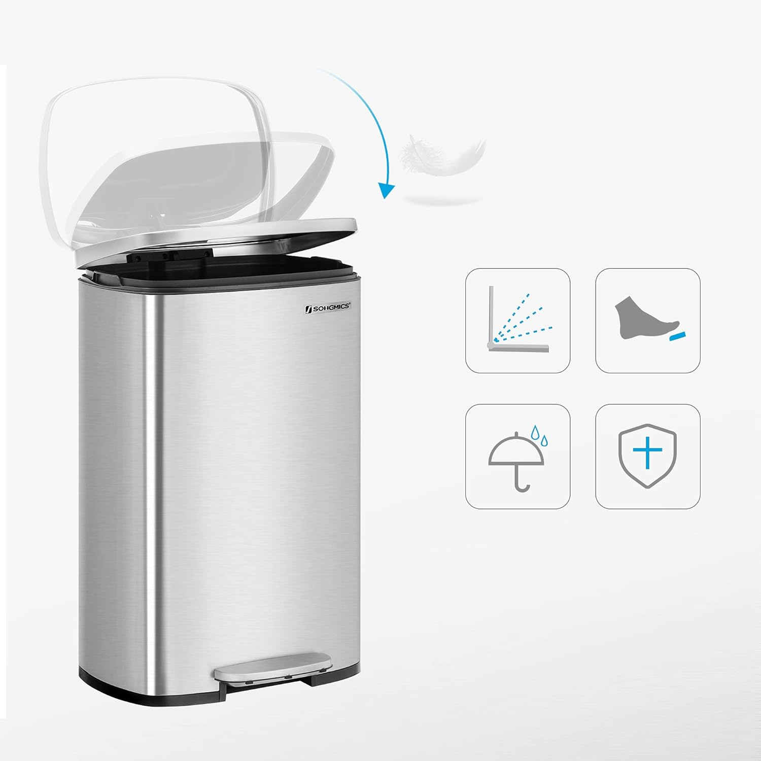 SONGMICS Cos de gunoi din otel, cu pedala si soft-close, galeata interioara, 50 litri, argintiu