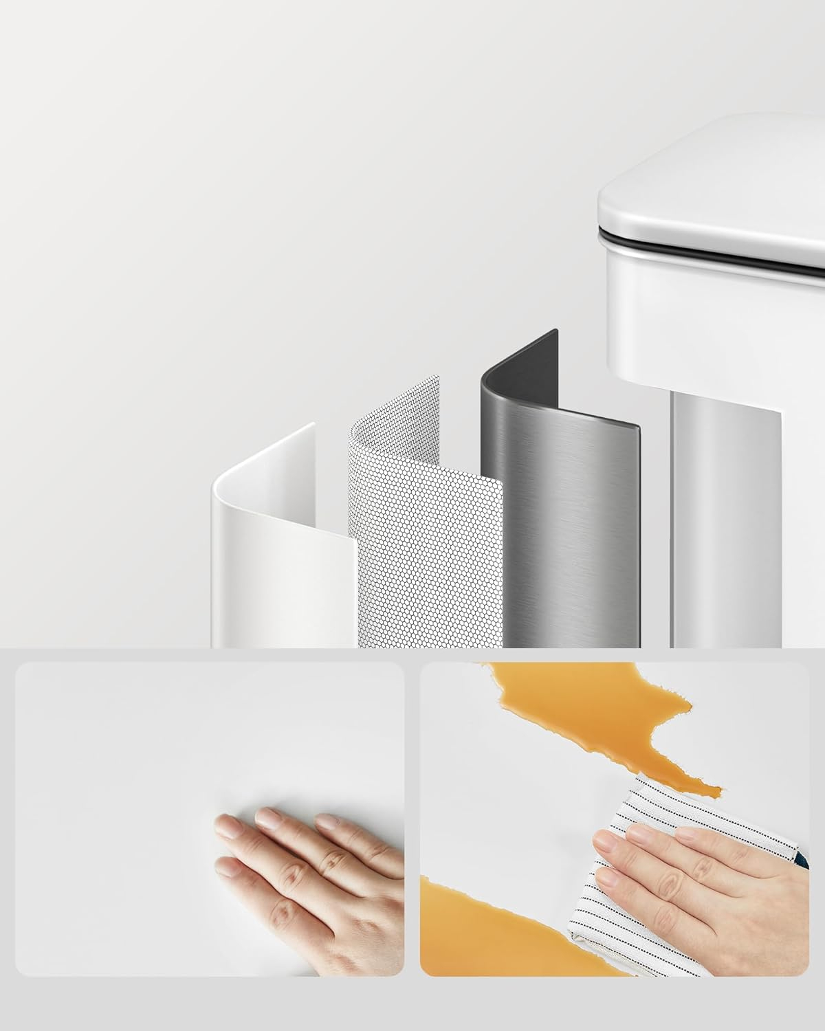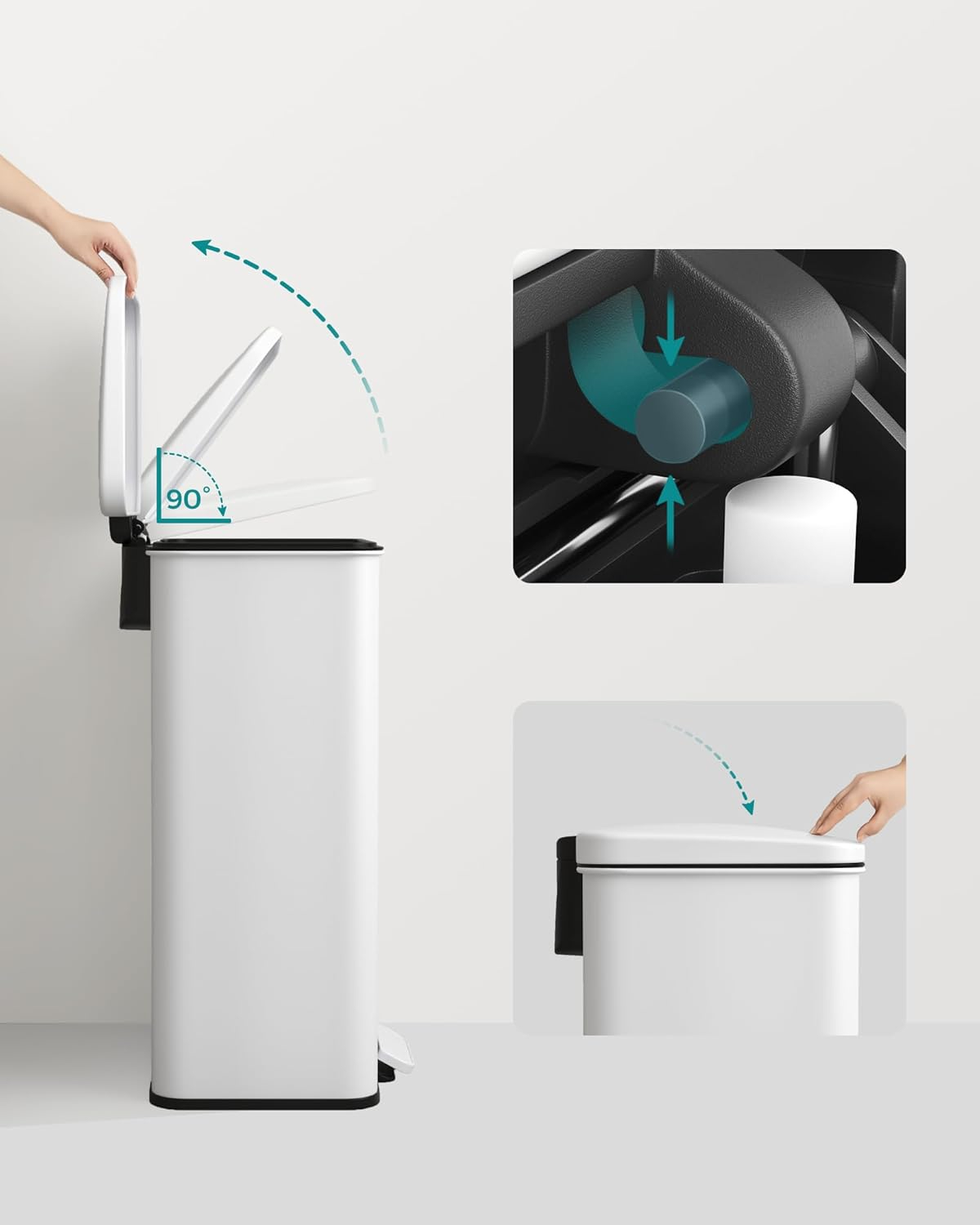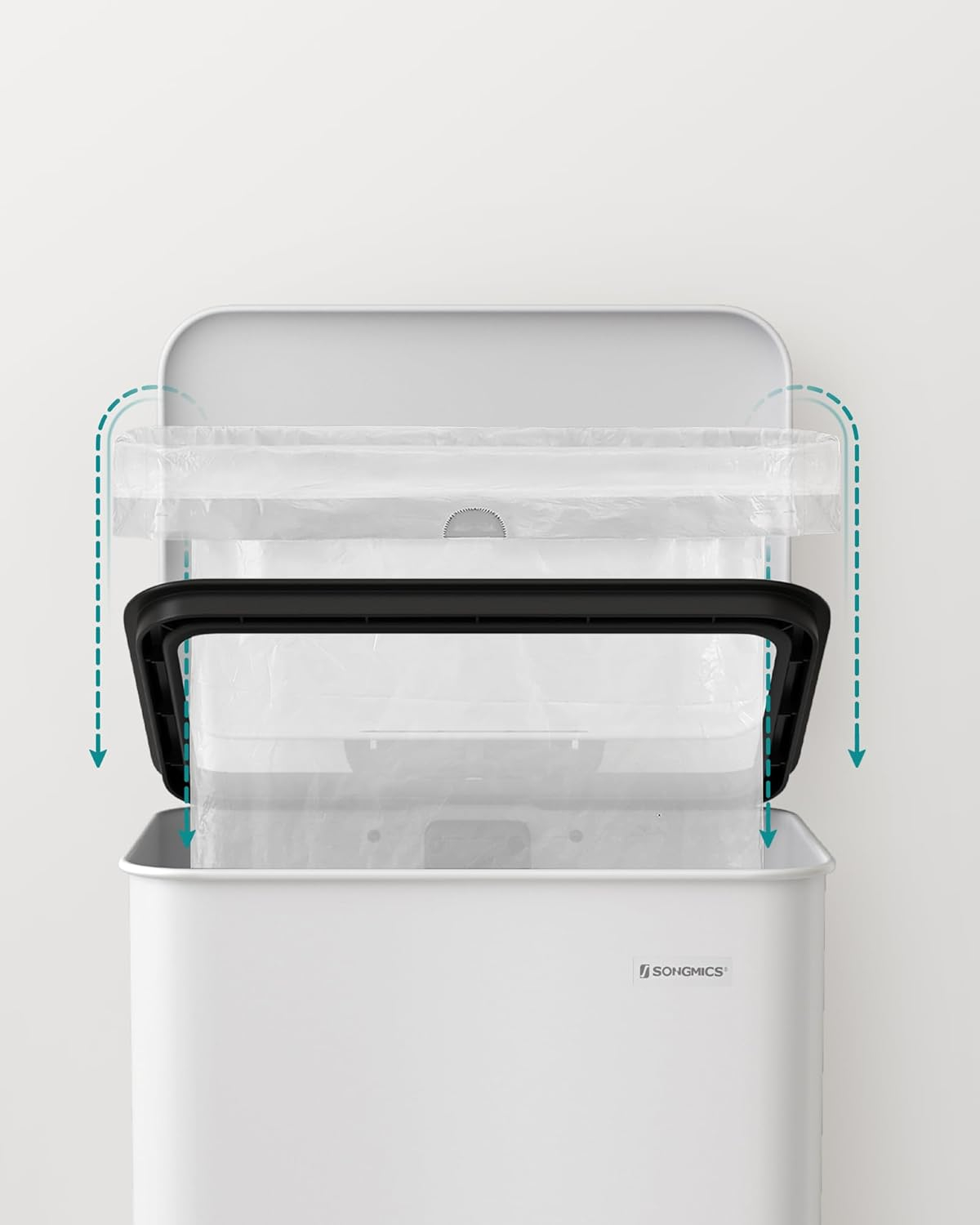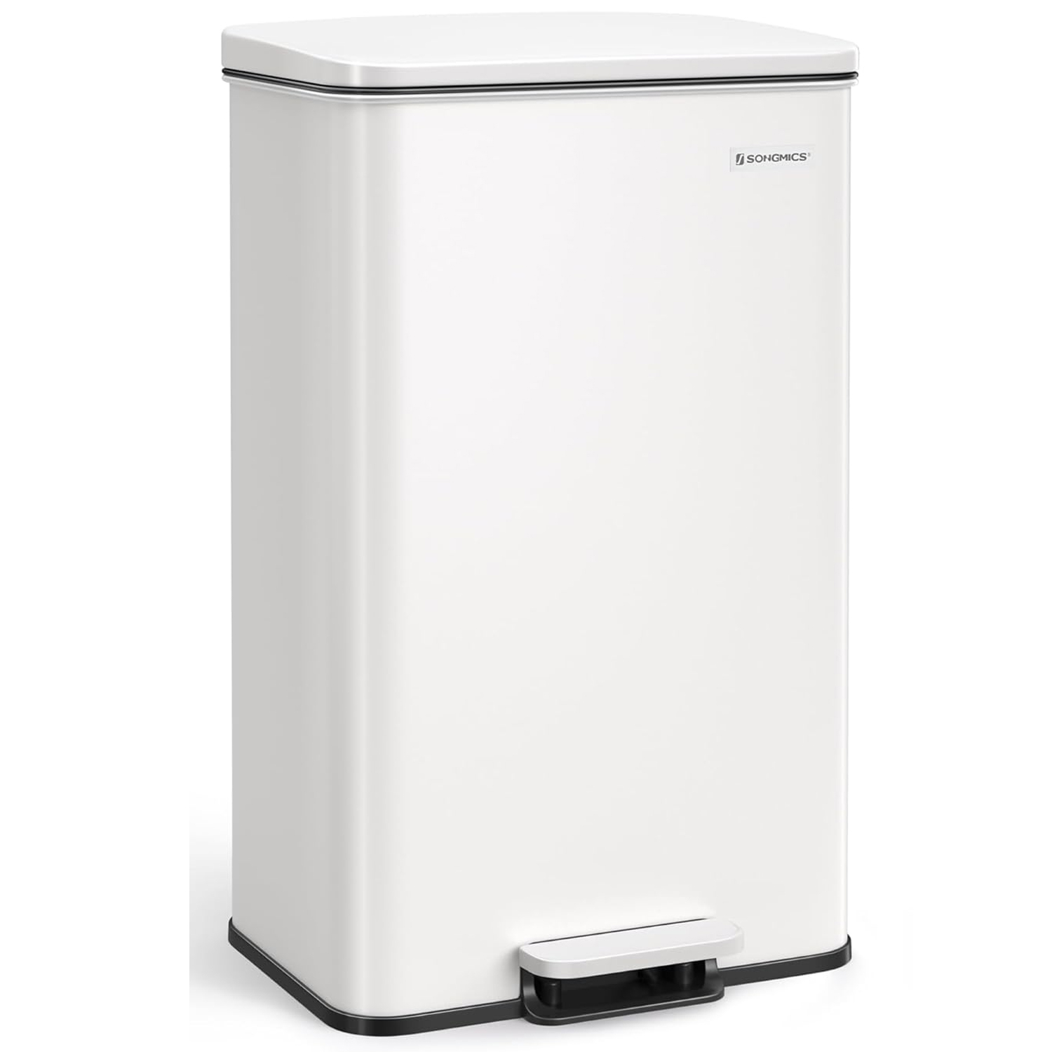 SONGMICS Cos de gunoi din otel, cu pedala si soft-close, saci gunoi inclusi, 40 litri, alb