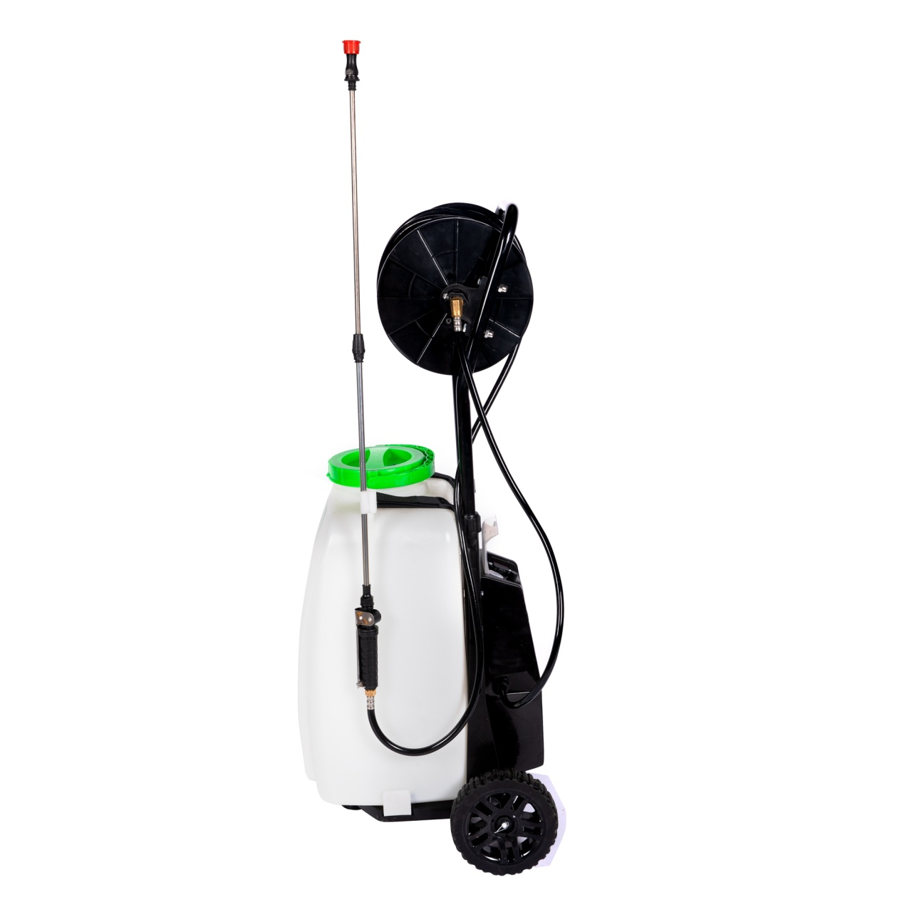 ✅ Furtun de 30m cu tambur de înfășurare – permite stropirea fără deplasarea pulverizatorului