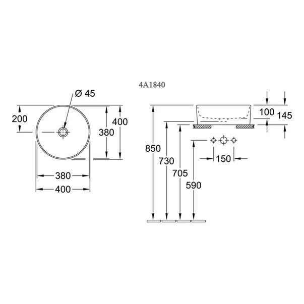 Villeroy&Boch Lavoar pe blat Villeroy&Boch Collaro rotund 40 cm alb