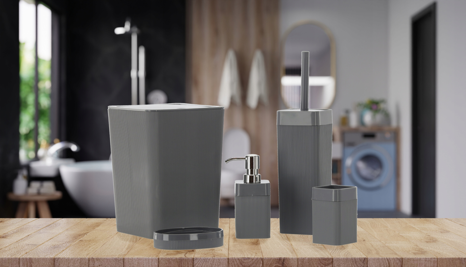 Set de accesorii pentru baie din plastic, 5 piese, gri