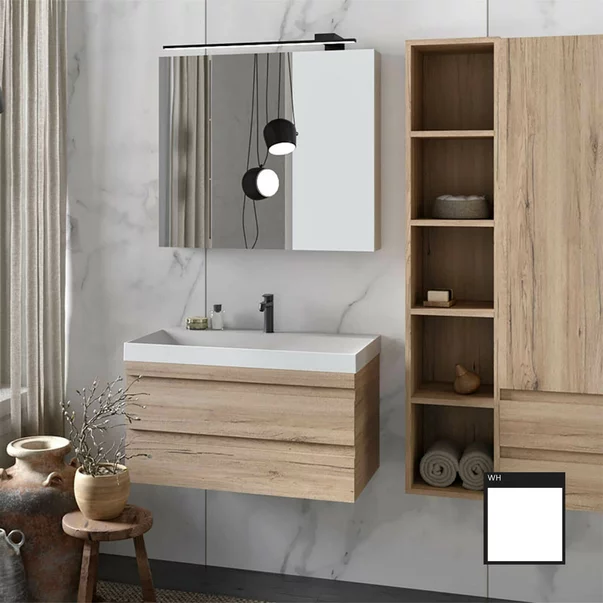 Set dulap baza suspendat KolpaSan Naomi alb cu lavoar 70 cm Detalii Set dulap baza suspendat KolpaSan Naomi alb cu lavoar 70 cm Unul dintre considerentele importante in proiectarea gamei Naomi a fost versatilitatea baii, motiv pentru care rafinamentul estetic este completat de zonele de depozitare. Mobilierul Naomi este disponibil in culorile alb, lemn artizanal (Craft Wood) si beton inchis (Dark Concrete). Abordarea modulara a amenajarii iti permite sa asamblezi o varietate de aranjamente de baie pentru a crea unul care sa raspunda tuturor nevoilor si dorintelor tale.