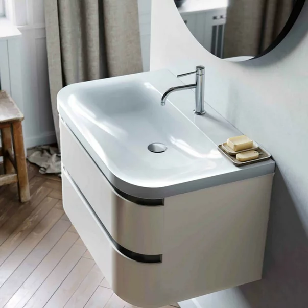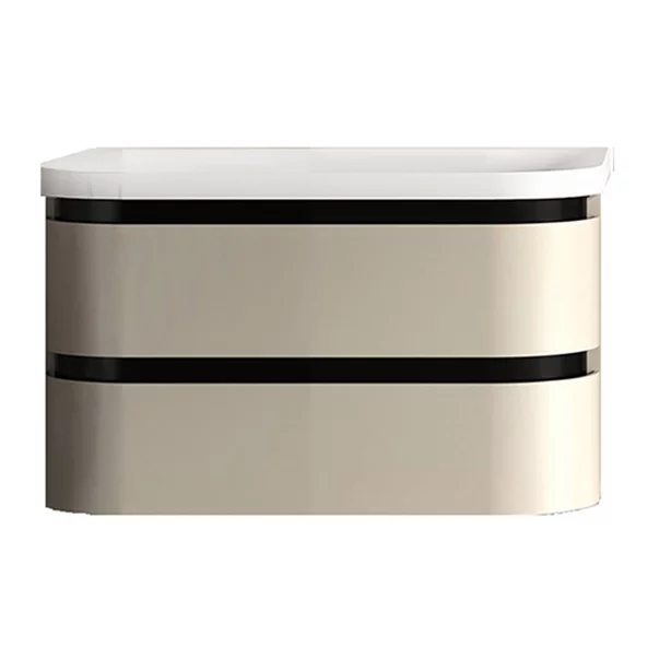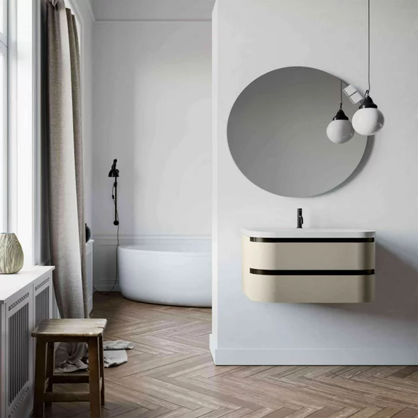 Set dulap baza suspendat KolpaSan Vittoria bej cu lavoar 80 cm Detalii Set dulap baza suspendat KolpaSan Vittoria bej cu lavoar 80 cm O fuziune unica de clasicism si futurism pentru a crea un concept care emana o nota de farmec si aristocratie. Prestigioasa Vittoria se joaca cu linii care se transforma brusc din linii drepte in linii curbe si moi. Gama Vittoria este disponibila in trei variante monocrome - alb, bej si gri inchis. Pentru a adauga o nota de farmec, elementele frontale sunt lacuite.
