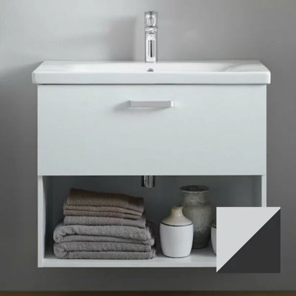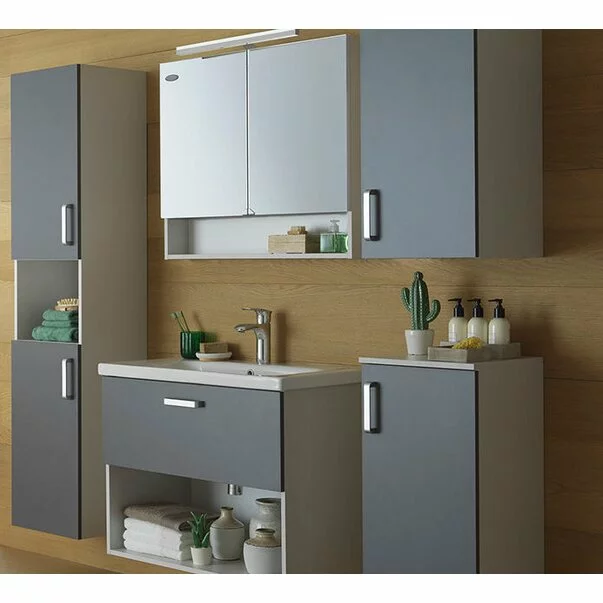 Set dulap suspendat si lavoar KolpaSan Evelin mdf gri/antracit 80 cm Detalii Set dulap suspendat si lavoar KolpaSan Evelin mdf gri/antracit 80 cm Gama KoplaSan Evelin cuprinde mobilier de baie cu design ergonomic. Cu finisaj semimat, manere metalice, seria de mobilier Evelin se potriveste perfect bailor moderne care pun accent atat pe design, cat si pe functionalitate. KolpaSan a reusit sa imbine estetica formelor simple, minimaliste, cu nevoia de spatiu de depozitare si de organizare a baii. Dulapul baza este completat de un lavoar ceramic cu o forma simpla, usor de utilizat. Rafturile si sertarele mobilierului KolpaSan Evelin te vor ajuta sa organizezi toate obiectele din baie exact asa cum iti doresti, astfel incat sa poti gasi de fiecare data exact ceea ce cauti. Mobilierul KolpaSan Evelin este disponibil in 3 combinatii de culori - alb complet (WH), gri/antracit (GRAY/ANT), gri/stejar (GRAY/OAK).