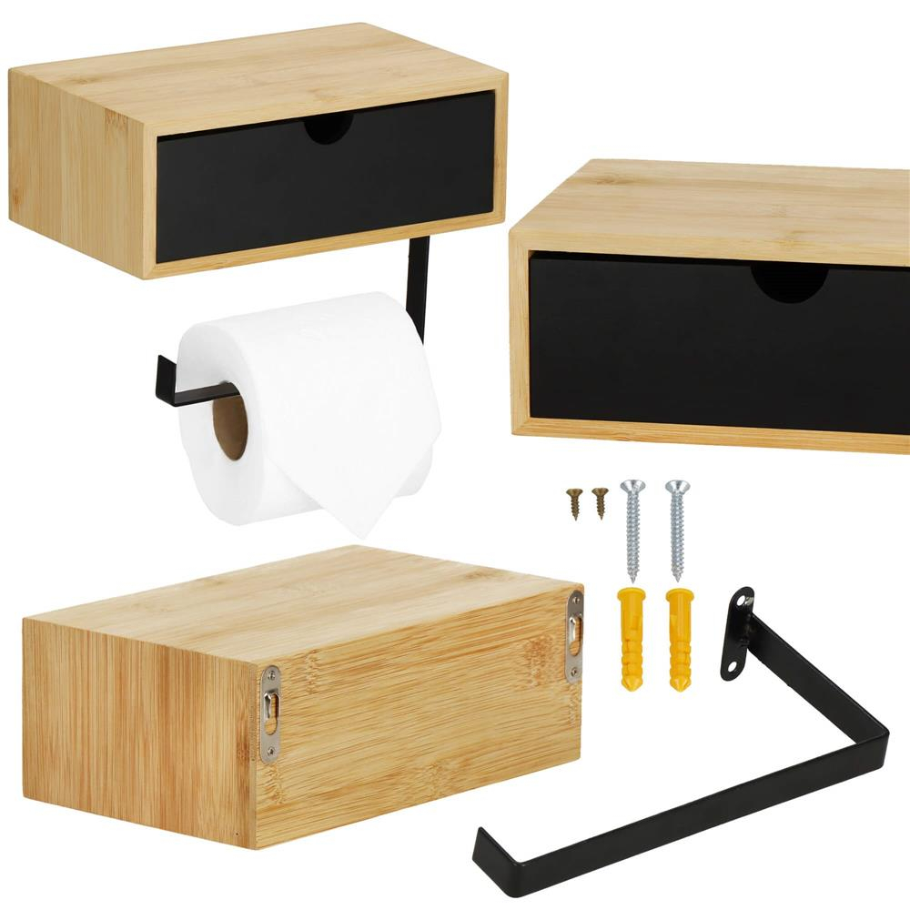 Suport hartie igienica din otel cu sertar depozitare, sistem montare inclus, 22cm, negru bej