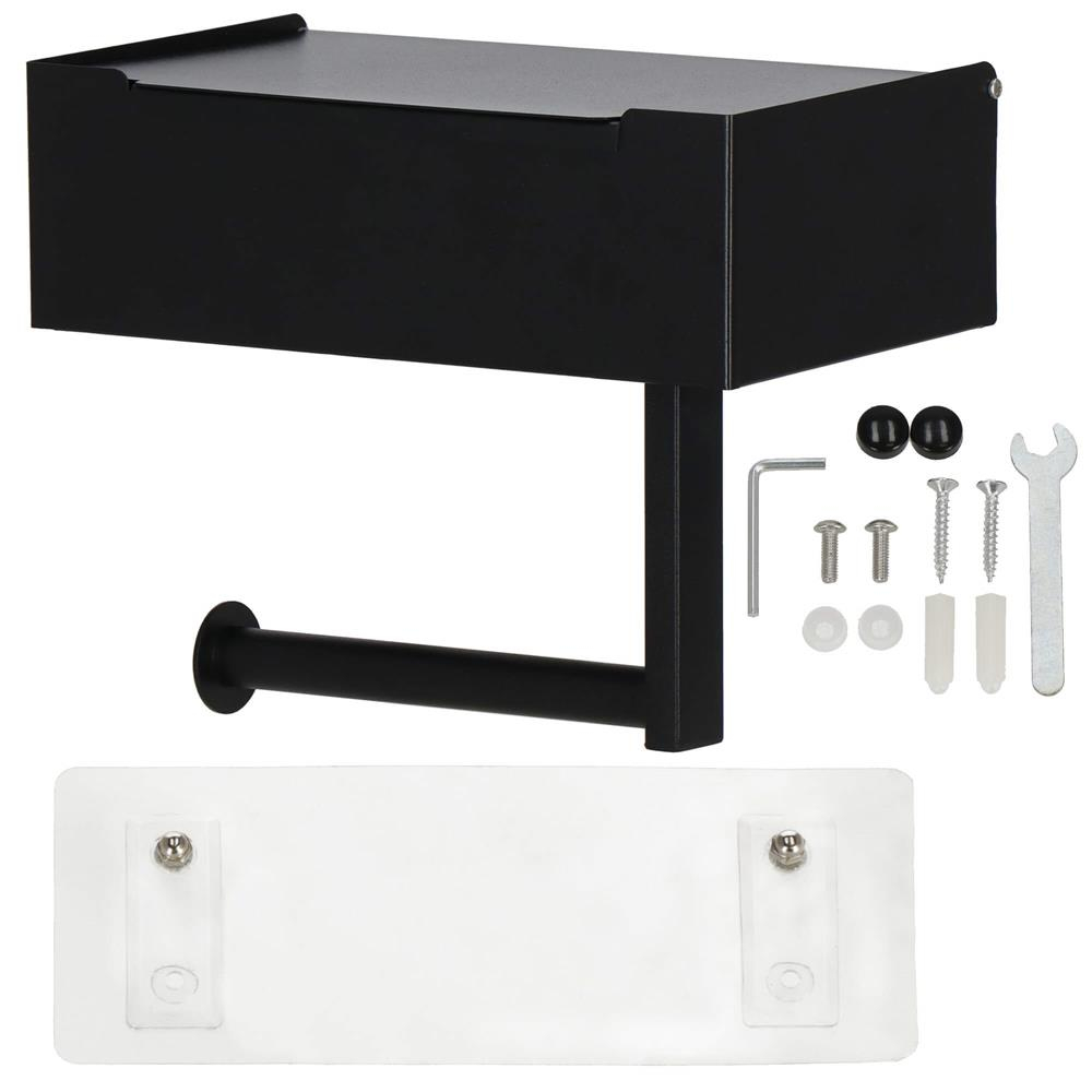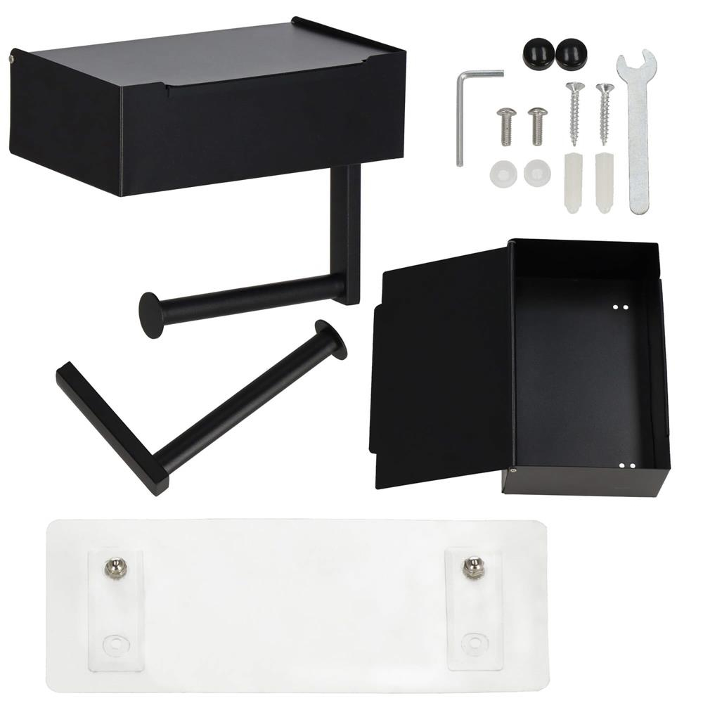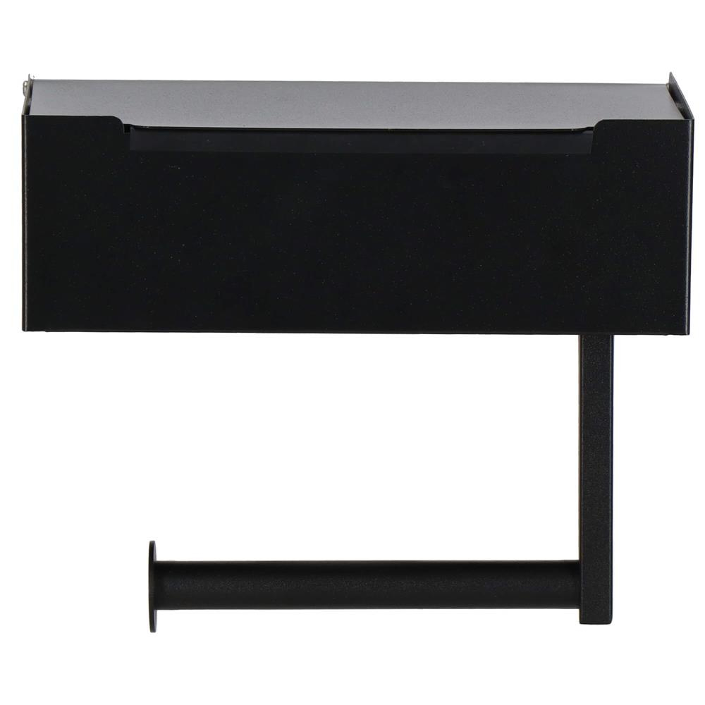 Suport hartie igienica din otel cu sertar depozitare, sistem montare inclus, 22cm, negru bej