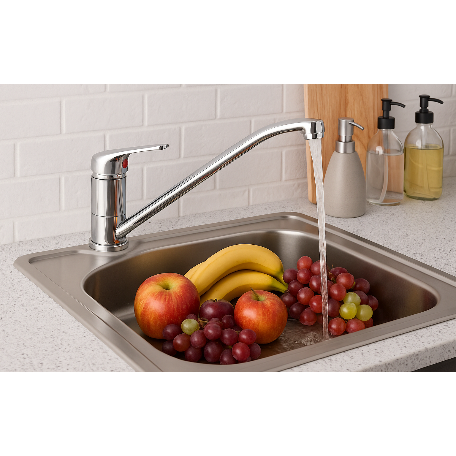 Ideala pentru chiuvete mari sau duble, permite umplerea oalelor voluminoase si spalatul tavilor cu usurinta, fara stropi in jur.