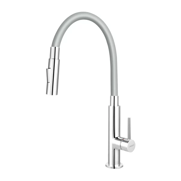 Baterie bucatarie Ferro Zumba Slim 2F gri-argintiu cu pipa flexibila Detalii Baterie bucatarie Ferro Zumba Slim 2F gri-argintiu cu pipa flexibila Fiecare baterie este parte din viata de zi cu zi, ajutandu-te sa ai un grad mai mare de confort si o utilizare facila si placuta. Chiar si atunci cand o folosesti pentru cele mai simple lucruri cotidiene vei aprecia formele ergonomice si posibilitatile multiple de a utiliza apa. Flexibilitatea pipei este de departe cea mai importanta caracteristica a modelului Zumba Slim 2F . Aceasta permite o utilizare usoara si reglarea individuala a inaltimii respectiv a distantei. Fiecare utilizator poate modela pipa in functie de nevoile sale. Aceasta propunere este excelenta pentru utilizatorii care apreciaza forma rafinata si potrivirea perfecta a culorilor cu restul elementelor de decor interior.