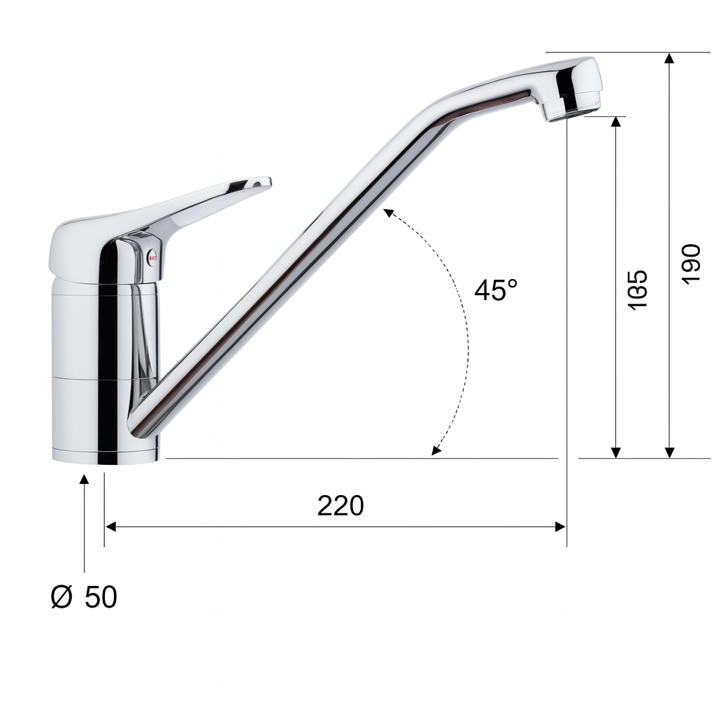 Unul dintre principalele avantaje ale modelului K40 este pipa pivotanta la 45°, care ofera libertate de miscare si usurinta in spalarea vaselor mari sau in umplerea recipientelor voluminoase. Inaltimea de 19 cm si lungimea pipei de 22 cm creeaza un spatiu generos intre baterie si chiuveta, crescand confortul utilizarii.