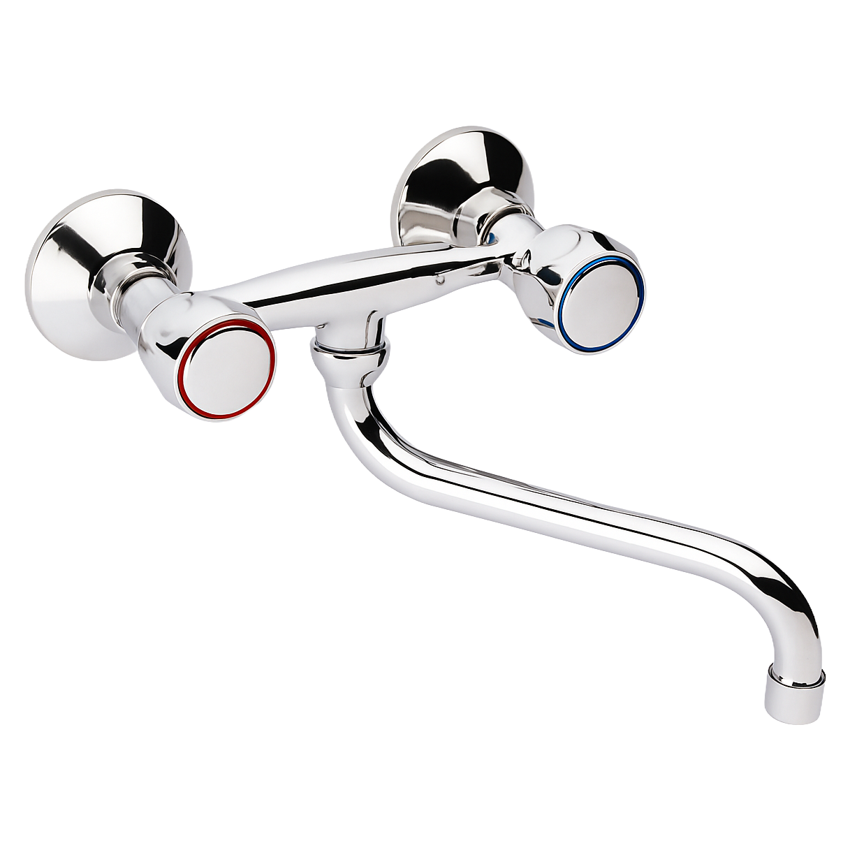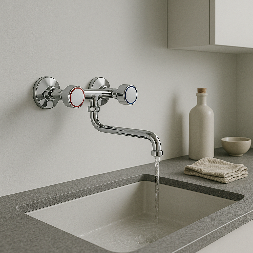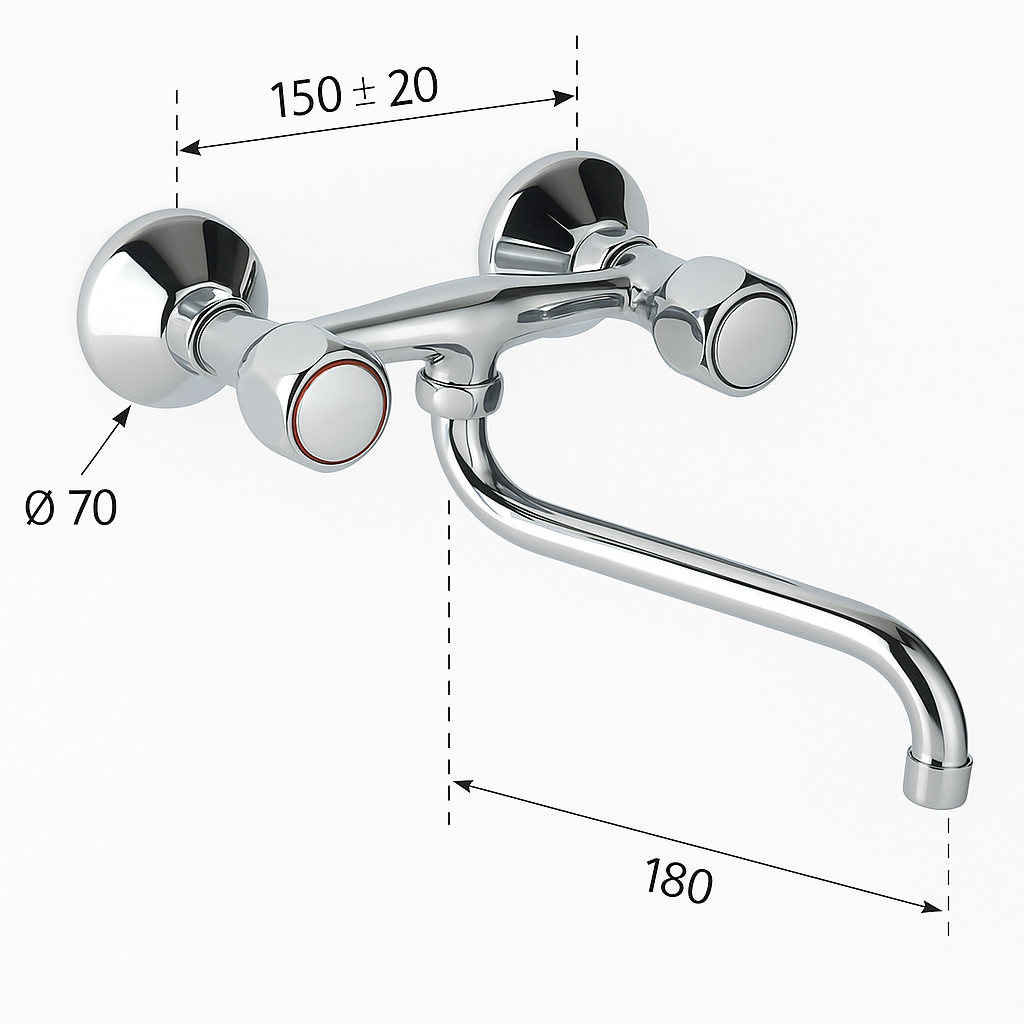 Bateria pentru bucatarie Remer 41Y este o solutie practica si rezistenta, ideala pentru utilizarea zilnica. Se monteaza pe perete si este prevazuta cu doi robineti separati pentru apa calda si rece, usor de manevrat datorita marcajelor clare rosu-albastru. Pipa are lungimea de 180 mm si permite o utilizare comoda la chiuveta, fiind prevazuta cu rotatie pentru o flexibilitate mai mare.