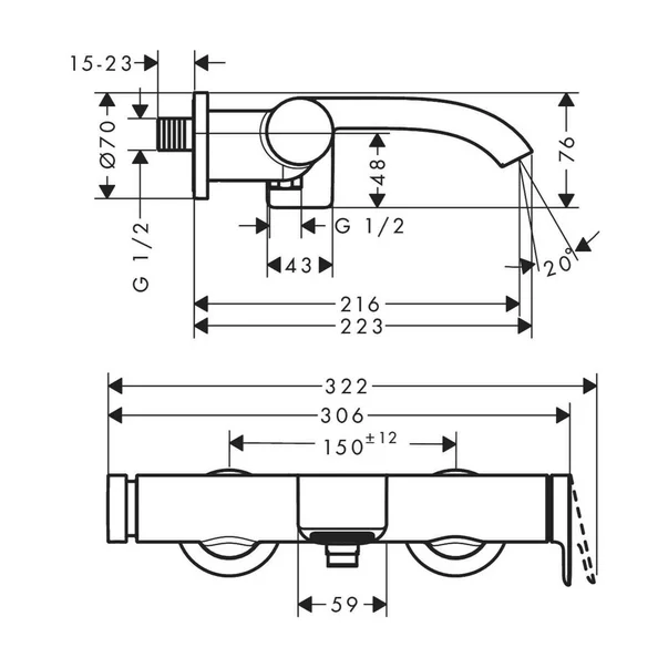 Hansgrohe Baterie cada - dus Hansgrohe Vivenis crom lucios monocomanda