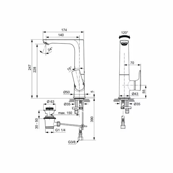 Ideal Standard Baterie lavoar Ideal Standard Connect Air cu pipa inalta