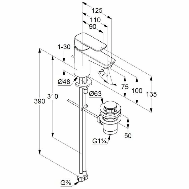 Kludi Baterie lavoar Kludi Pure&Style 75 cu ventil metalic pop-up