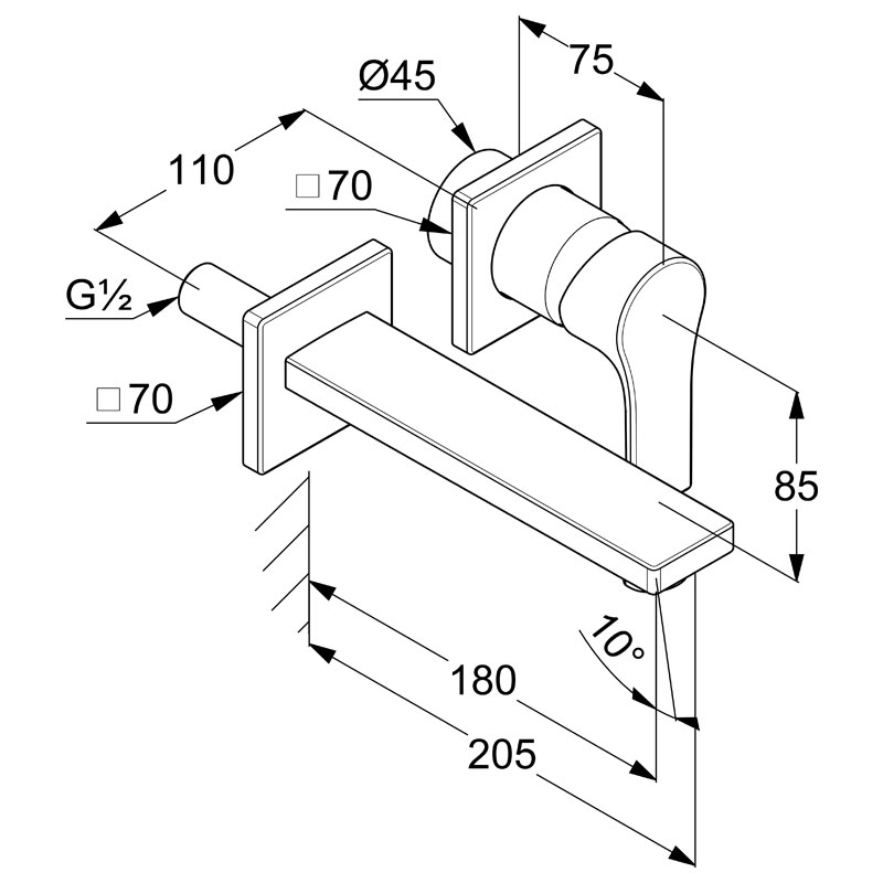 Baterie de perete monocomanda lavoar, pentru montaj mascat, pipa 180 mm, cu 2 treceri, Kludi, Zenta SL