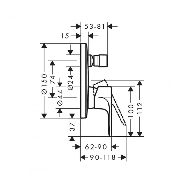 Hansgrohe Baterie cada - dus incastrata Hansgrohe Rebris E crom lucios