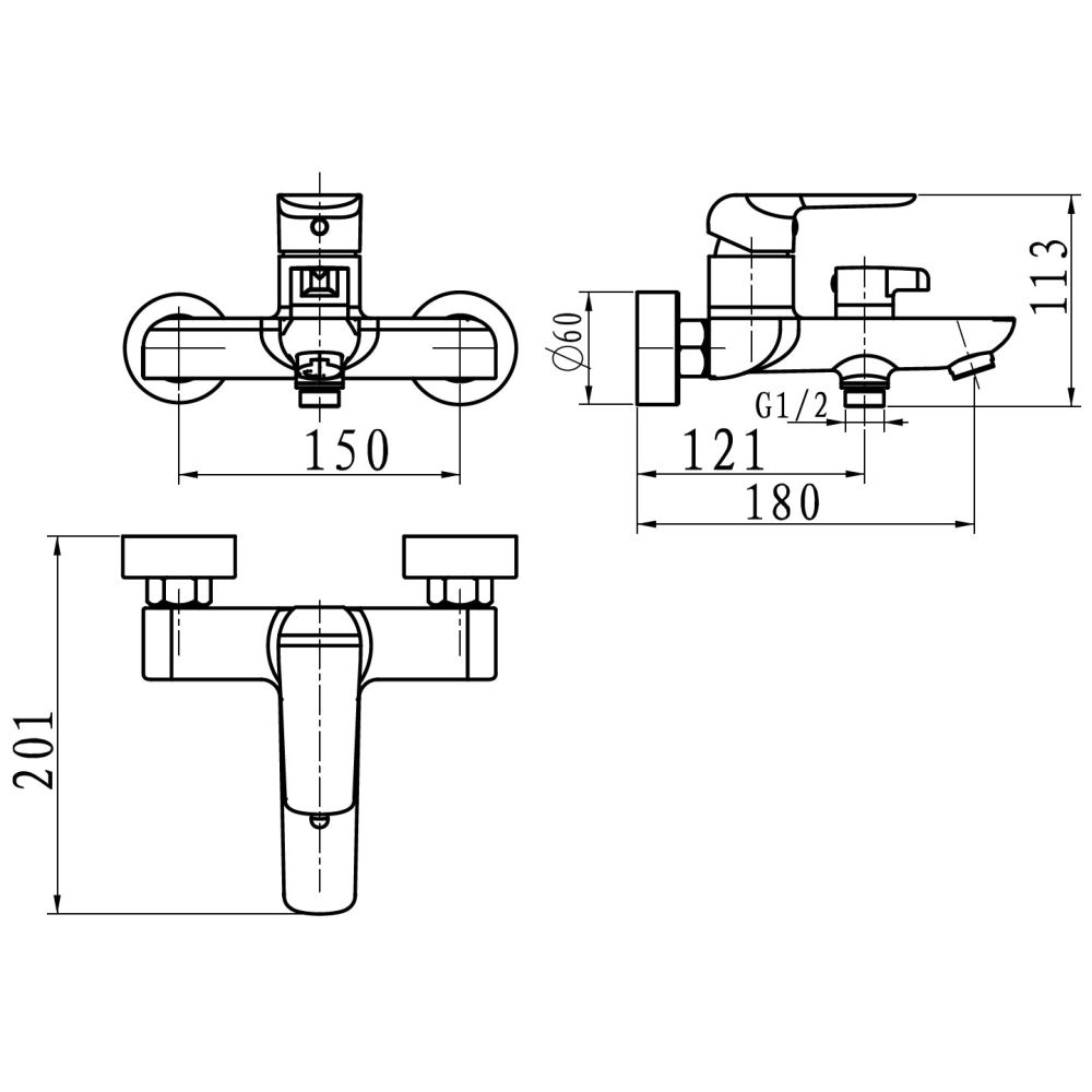 Baterie cada sau dus culoare negru cu montaj pe perete, Ferro Tina