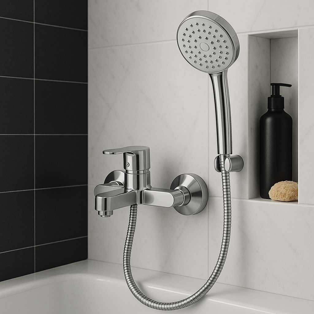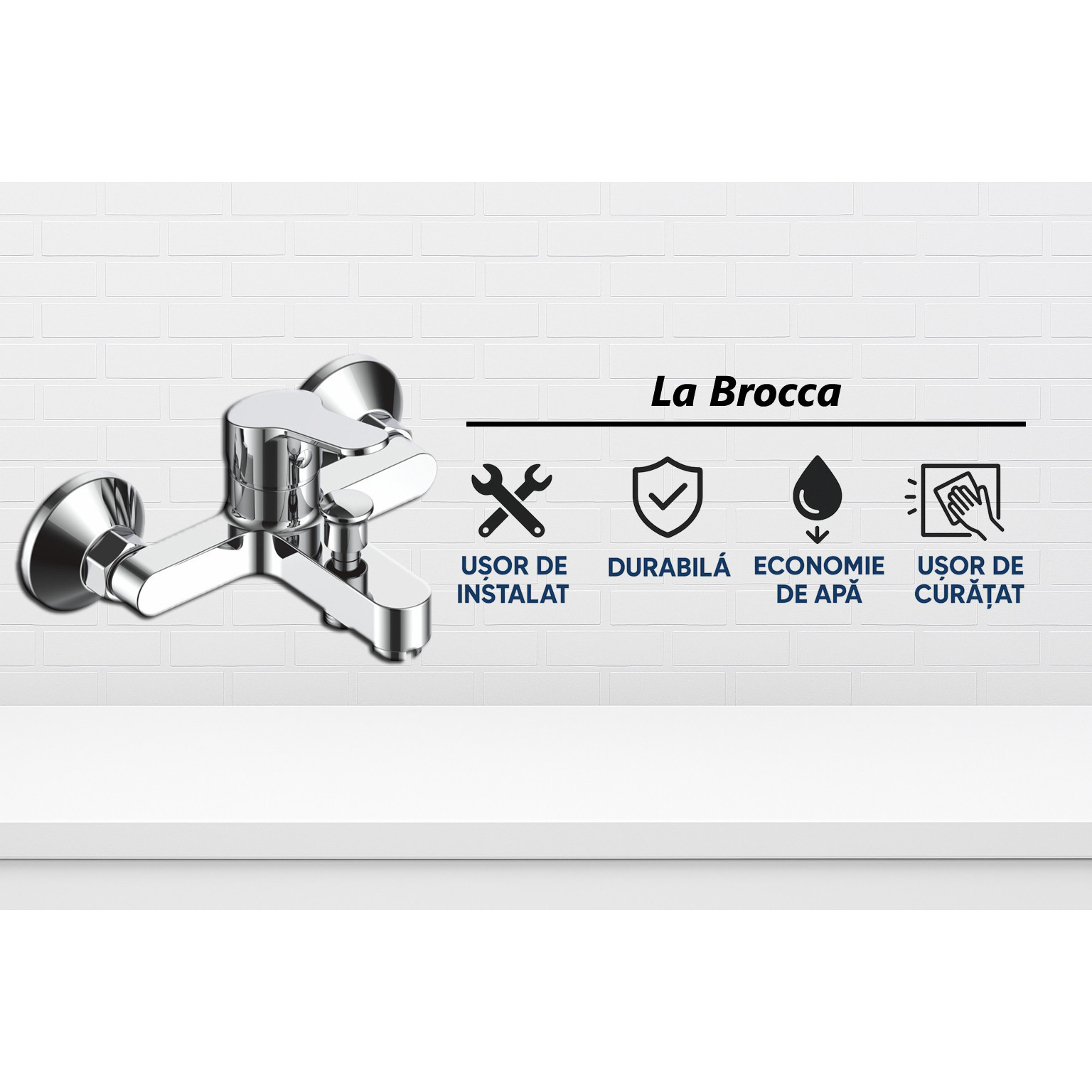 Baterie cada si dus La Brocca NAPOLI P300C305, Monocomanda, Design slim, Montaj pe perete, Economie de apa, Silentioasa, Usor de curatat si instalat, alama sanitara, Finisaj crom
