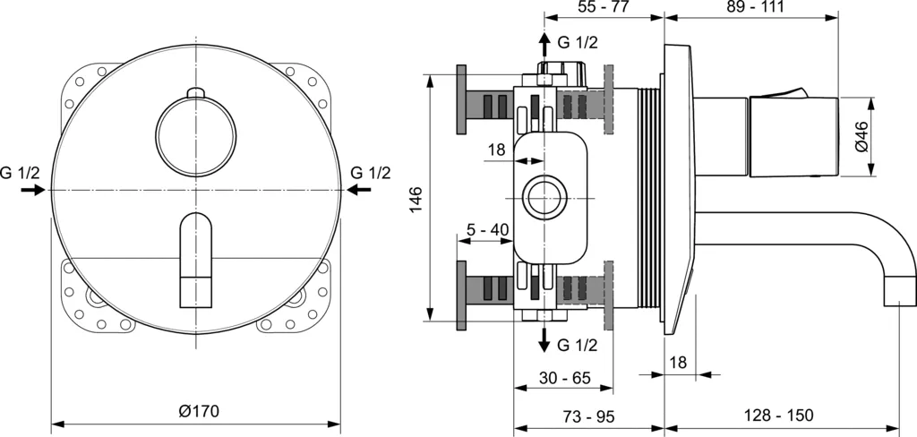 Ideal Standard Baterie lavoar cu infrarosu Ideal Standard Ceraplus A6148AA, 1/2'', montare pe perete, alimentare retea, crom