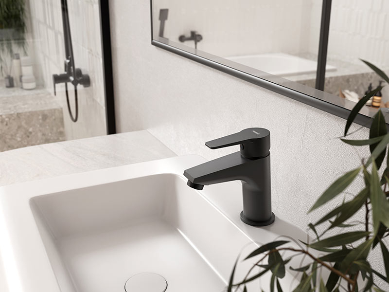 Ferro Baterie lavoar cu ventil clik-clack, negru mat, Ferro Ritto