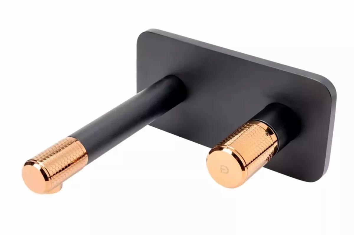 Negrul catifelat al robinetului aduce în minte culoarea celei mai întunecate ardezie (italiană: Ardesia), care este, de asemenea, asociată cu soliditatea și durabilitatea pietrei. La randul lor, detaliile intr-o nuanta de aur roz imbogatesc simplitatea formelor cu un accent cochet, usor avangardist.