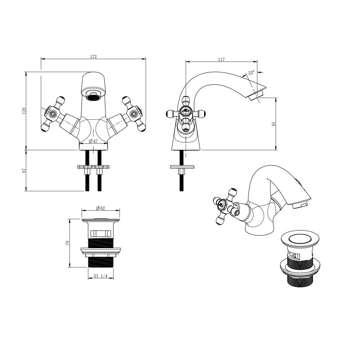 Baterie lavoar Fdesign Lacrima, S, 128 mm, crom, FD1-LRA-2-11