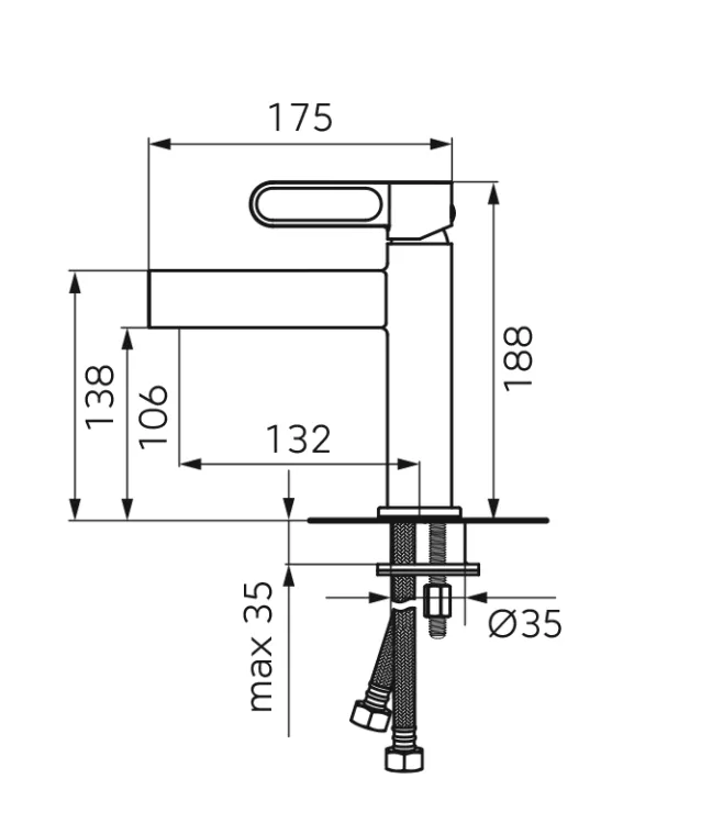 Baterie lavoar FDesin Zaffiro FD1-ZFR-2-33, 3/8'', marimea M, monocomanda, ventil, mat, alb