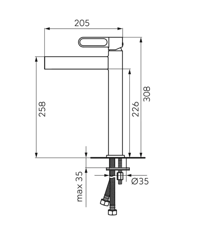 • - lungime racorduri 205 mm