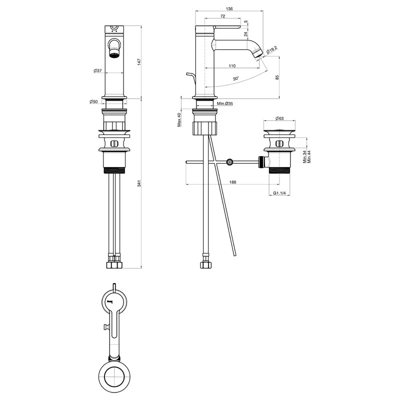 ventil: bateria vine cu un ventil pop-up, care facilitează scurgerea apei din lavoar.