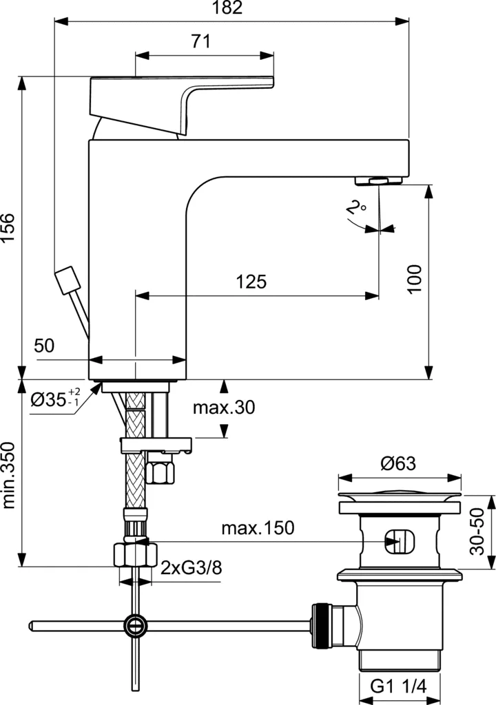 Baterie lavoar Ideal Standard Edge A7104AA, 3/8'', marimea M, monocomanda, cartus ceramic, evacuare cu tija, crom