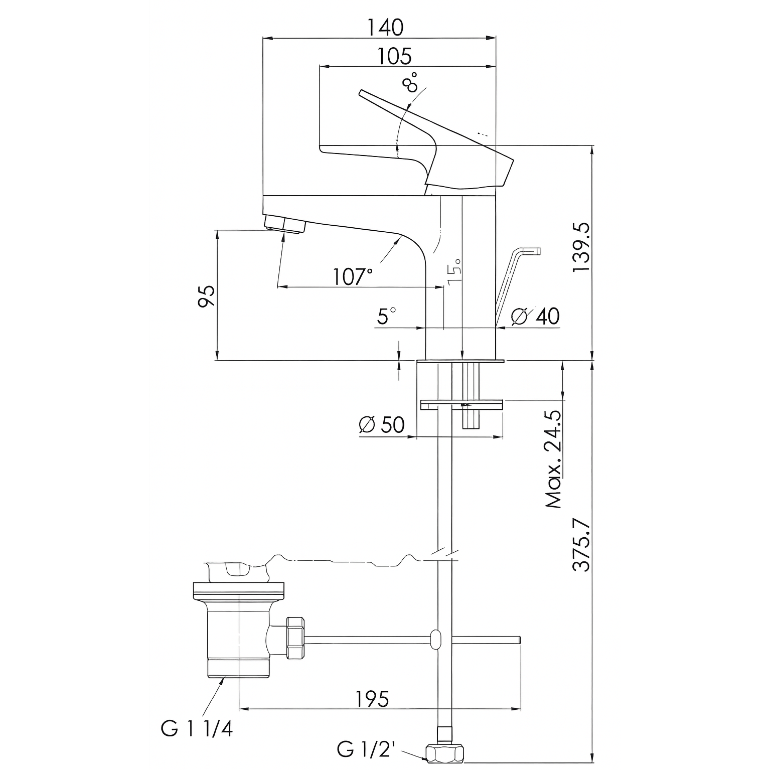 Baterie lavoar Remer Rubinetterie Winner W10P, monocomandata, ventil pop-up, cartus ceramic, crom lucios, alama