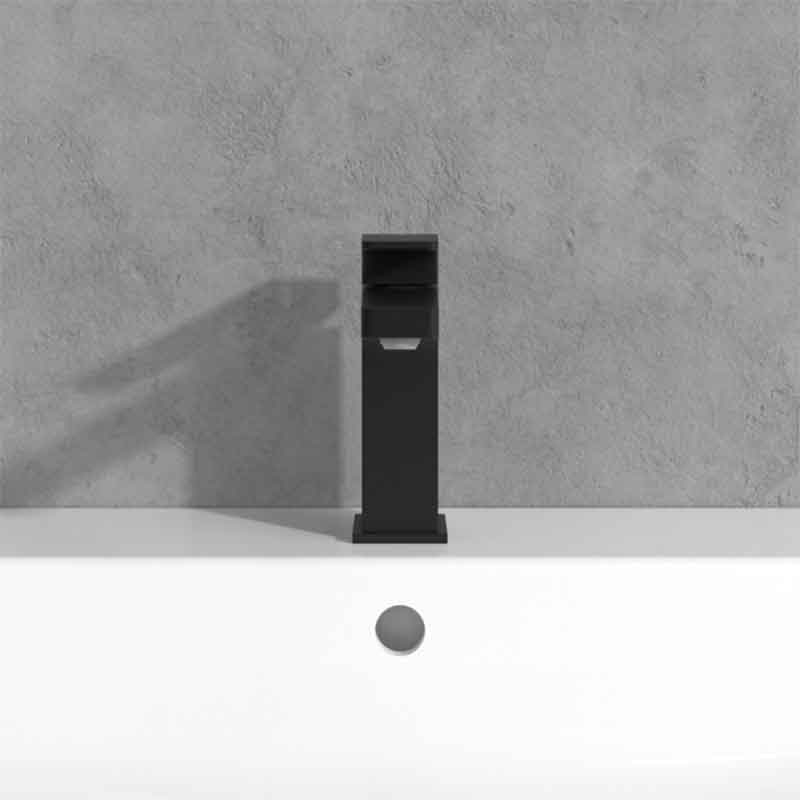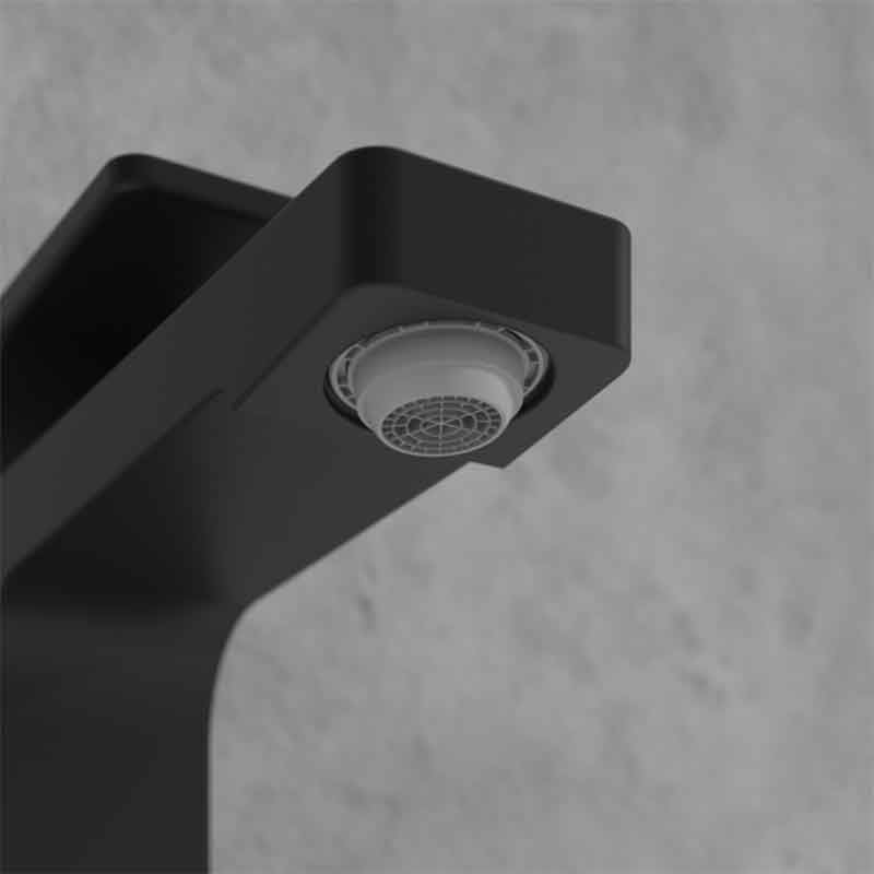 • Forma pătrată și finisajul negru mat se integrează ușor în băi moderne, elegante.