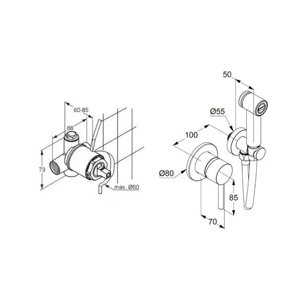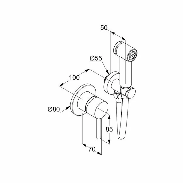 Kludi Dus igienic cu baterie Kludi Bozz cu agatatoare para furtun si baterie incastrata crom