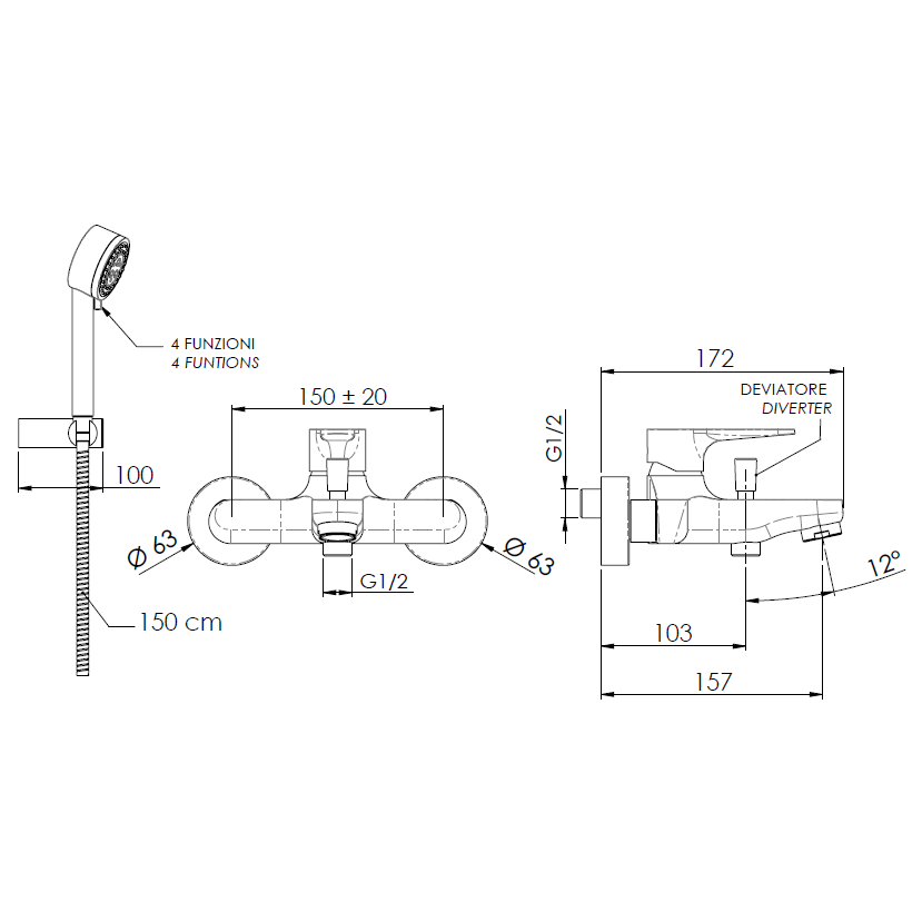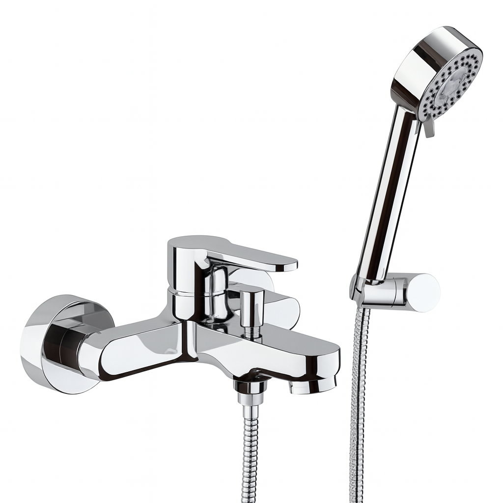 Set baterie cada si dus Remer Rubinetterie Winner W02, monocomanda, cartus ceramic, montare rapida, 4 tipuri de jeturi, Cromat