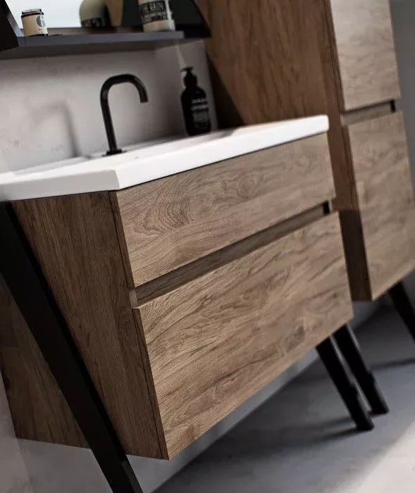 Dulap pentru lavoar Defra Arty, pe podea, 80 x 40 x 83 cm, setar, mat, maro, 215-D-08006
