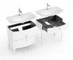 Ambele sertare se bazează pe cel mai bun sistem de extensie BLUM Legrabox disponibil pe piață - datorită acestui fapt, extensia lor este lină și ușoară chiar și sub sarcină, iar închiderea silențioasă și extensia completă sporesc impresia de confort și comoditate. Dulapurile de 82 cm, atât cu două, cât și cu un sertar, pot fi combinate cu un lavoar sau cu un blat turnat din material solid. În primul caz, acestea funcționează ca un dulap clasic pentru lavoar, în al doilea - ca o masă de toaletă practică sau o comodă spațioasă. La completarea cu un blat de lucru, instalați mai întâi bara și profilul metalic atașate blatului în dulap, ceea ce va asigura o rigiditate și un suport adecvate.