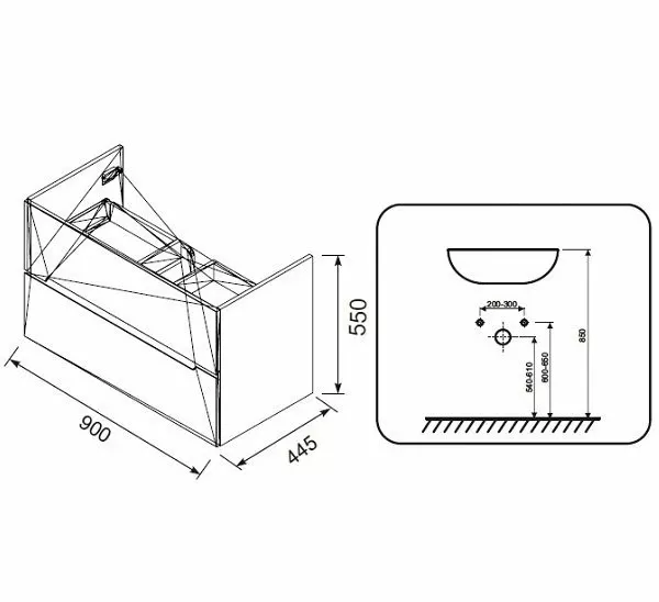 Dulap pentru lavoar Oristo Silver, suspendat, 90 x 45 x 55 cm, sertar, mat, gri, 33-SD2S-90-4