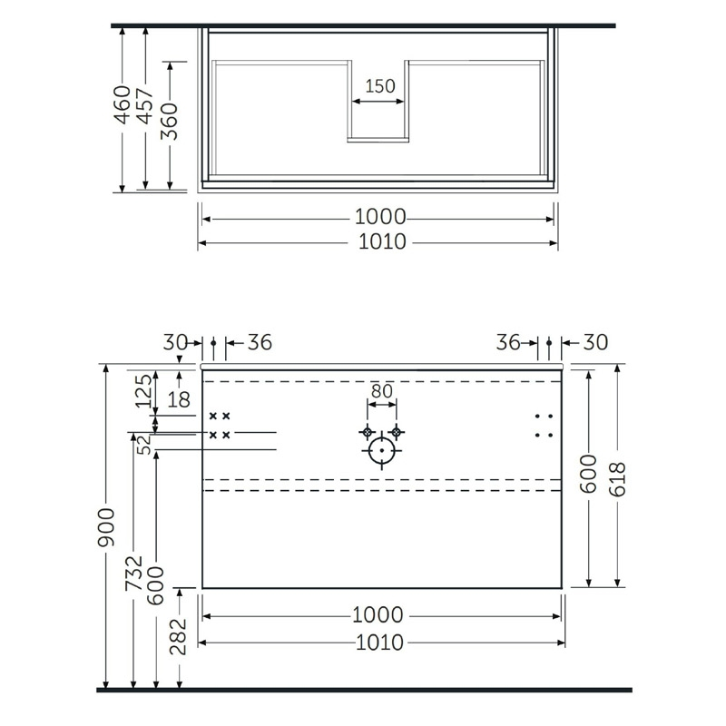 Mobilier suspendat, Rak, Joy, pentru lavoar incastrabil, 100 cm, gri
