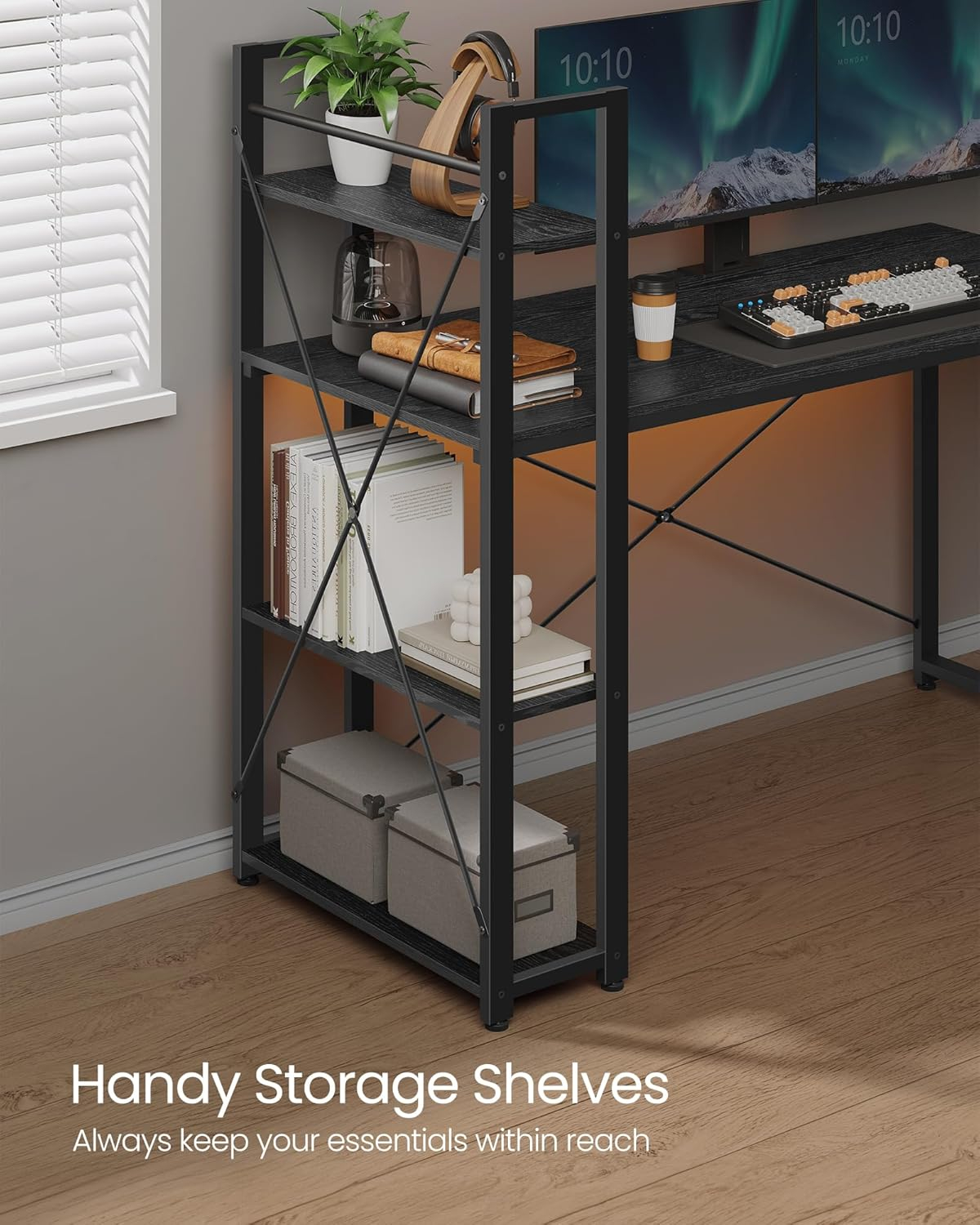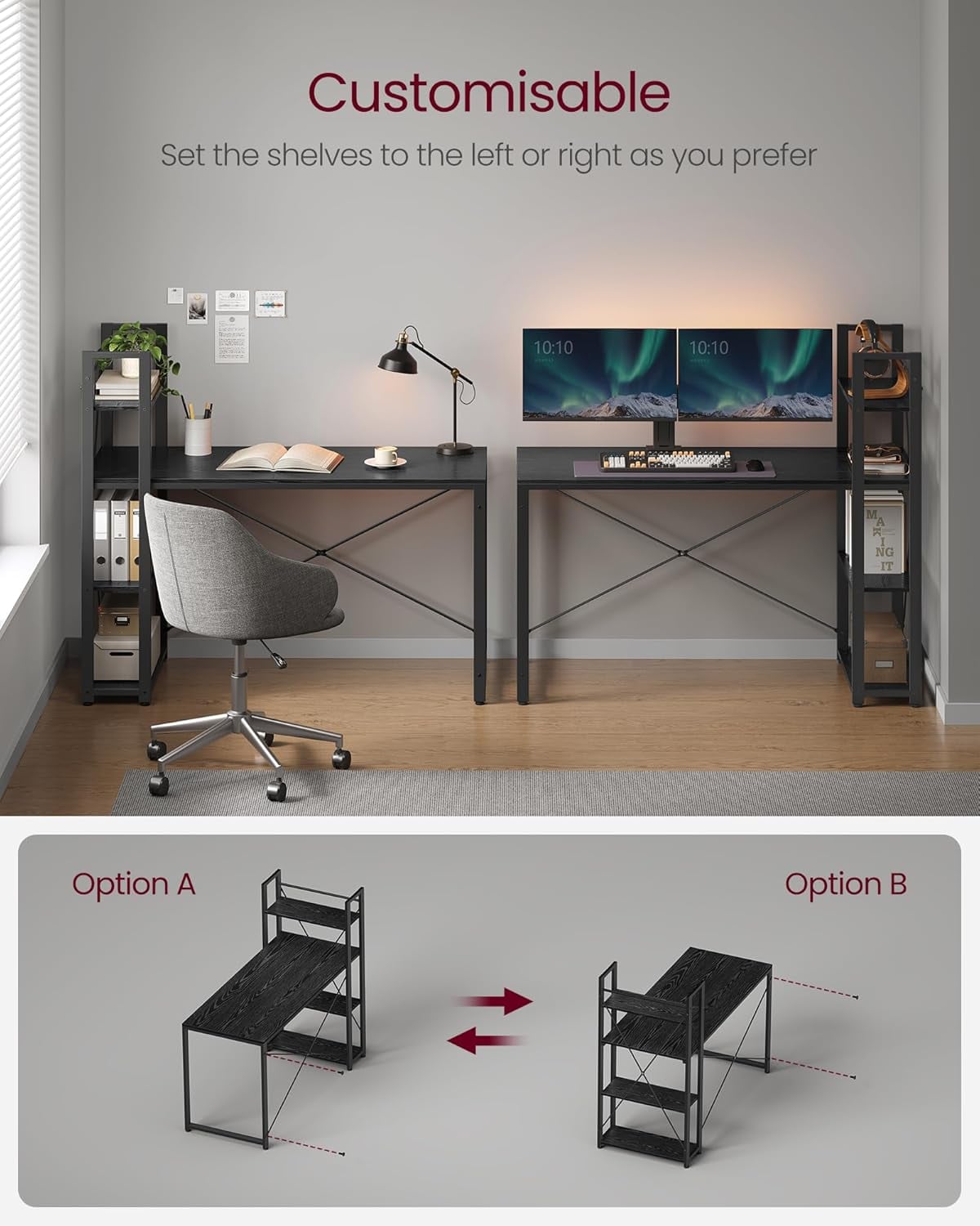 Configuratie flexibila a spatiului de lucru Biroul pentru calculator VASAGLE include un raft atasat flexibil, care va permite sa il pozitionati pe partea preferata – dreapta sau stanga. Aceasta caracteristica ofera personalizare pentru a se potrivi nevoilor spatiului dvs. de lucru