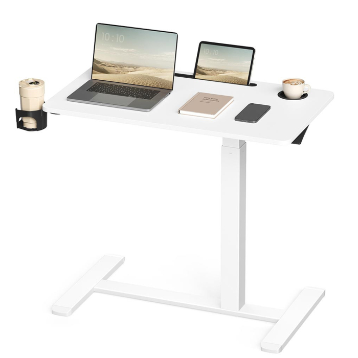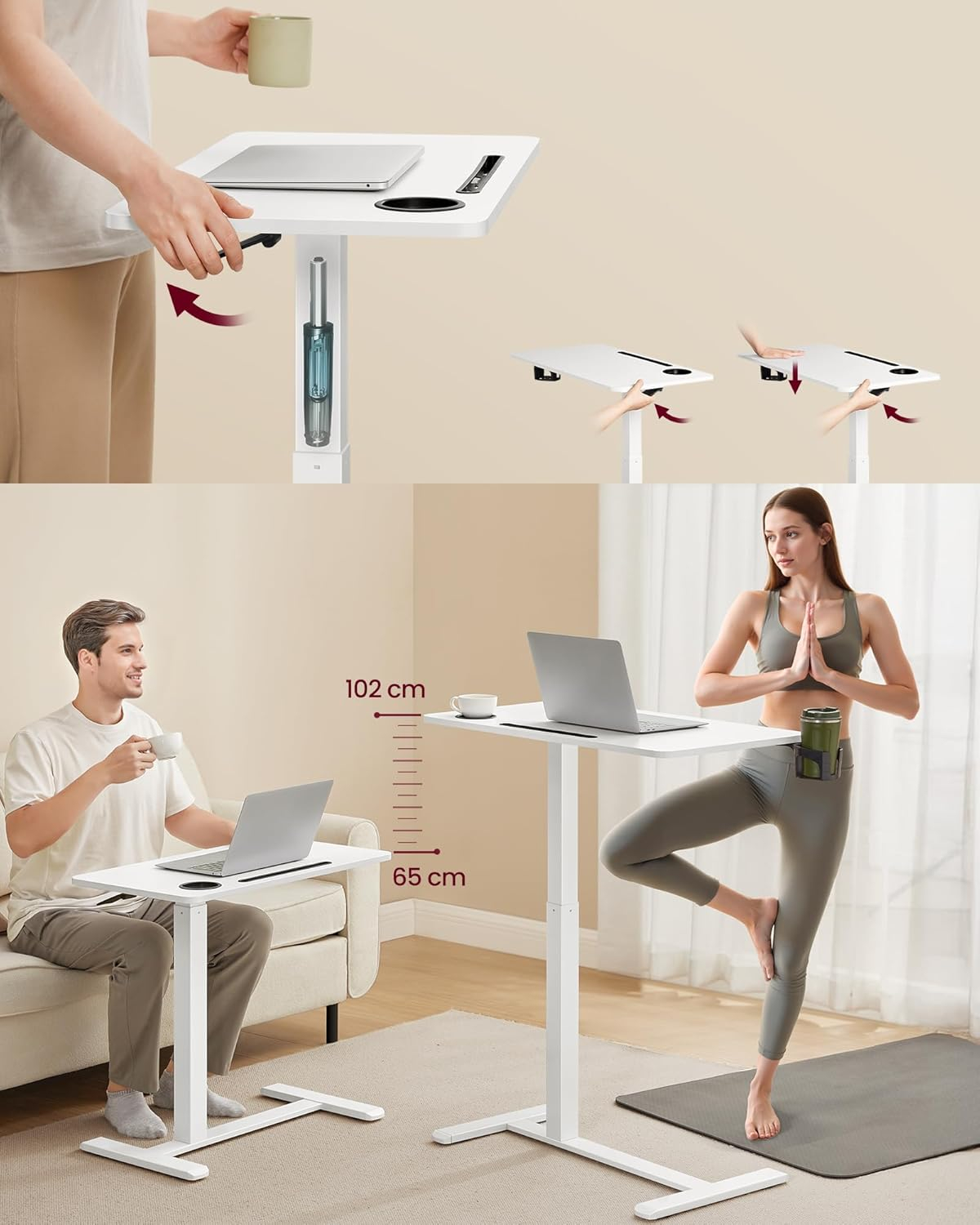 Masa tip birou, ajustabila cu roti pentru pat sau canapea, blat 80x45 cm, inaltime reglabila 65-102 cm, alb