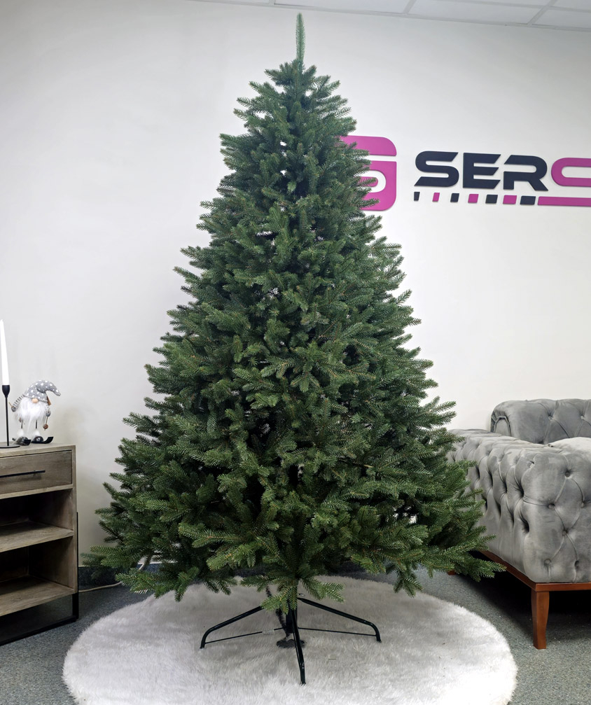 Imagine reala de prezentare pentru modelul Alpin Select, varianta 210cm PARAMETRII: – Inaltimea totala a bradului (dimensiune masurata de la podea pana in varf, cu tot cu suport): 230cm – Diametrul (latimea la baza in cel mai lat punct): 155cm – Numarul total al ramificatiilor: 1323 dintre care:– Crengute 2D, material PVC: -– Crengute 3D, material PE: 1323– Suport inclus: metal– Zapada: NU– Alte decoratiuni: –– Greutate (fara ambalaj): 18.6kg– Dimensiune ambalaj carton: 35 x 35 x 130cm BRAD DE CRACIUN UNIC PENTRU CRACIUN UNIC Ce poate fi mai fermecator decat atmosfera unica a Craciunului? Si probabil ca niciunul dintre noi nu se indoieste ca un brad splendid impodobit este cel mai important element care construieste aceasta atmosfera magica de Craciun. La urma urmei, ritualul anual al impodobirii in familie a bradului de Craciun este unul dintre cele mai de neuitat momente, evocand multe amintiri frumoase. Bradul de Craciun prezentat va reflecta atmosfera minunata a Craciunului intr-un mod unic, si in acelasi timp atat de cunoscut si de indragit, subliniindu-i caldura si atmosfera de familie. DESCOPERA AVANTAJELE POMULUI NOSTRU DE CRACIUN – manopera precisa, imbinand soliditatea cu eleganta– densitate mare de ramuri si ace– distributie uniforma a acelor pe toata ramura – fara goluri– spatiu liber sub etajul inferior pentru cadouri– posibilitate de modelare a crengutelor in mai multe moduri– varietatea si realismul capetelor de crenguta– culoarea acelor imitand perfect acele naturale– diferentierea ramurilor – in functie de nivelul de inaltime– grosimea si durabilitatea firelor– fiabilitatea intregii structuri – arborele este aproape imposibil de distins de brazii naturali Cu bradul Christmas Deluxe by Sersimo® – un element inseparabil al Craciunului – veti petrece aceasta perioada magica de iarna intr-o aura de bucurie si caldura. Ganditi-va doar cat de frumos vor arata decoratiunile – stralucitoare, presarate cu sclipici, incalzind interiorul. Chiar si oamenii care nu impartasesc entuziasmul de Craciun recunosc ca un brad de Craciun impodobit frumos creeaza o atmosfera aparte. Cel mai mare avantaj al bradului nostru de Craciun este numarul mare de ramuri dens aranjate. Datorita densitatii si elegantei sale captivante, nu necesita prezenta a numeroase decoratiuni, fiind cu adevarat un decor grozav al oricarui interior! Etajul cel mai de jos al pomului de Craciun este la inaltimea potrivita, astfel incat sa puteti pune cu usurinta cadourile de Craciun sub el.Crengile pot fi indoite cu usurinta in diferite directii pentru a modela diferitele ramuri ale pomului si a le da forme diferite. Crengutele individuale au finaluri realiste si variate, iar niciuna nu este taiata intr-un mod artificial si inestetic. Culoarea lor intr-un mod extrem de realist imita culoarea reala a coniferelor si nu se estompeaza in timp. Sarma ascunsa cu grija nu se vede prin ace si, in acelasi timp, este suficient de groasa si rezistenta pentru ca bradul sa va serveasca ani de zile! Ace din folie PVC, puternice si durabile, sunt in acelasi timp extrem de placute la atingere. Deoarece bradul de Craciun – spre deosebire de copacii adevarati – nu ii pierde, nu va fi nevoie sa aspirati camera in mod regulat. Mai mult decat atat, acele sunt distribuite uniform pe toata lungimea ramurii, garantand astfel un efect vizual de densitate, fara goluri. https://youtube.com/shorts/zsVyUqXssI0
