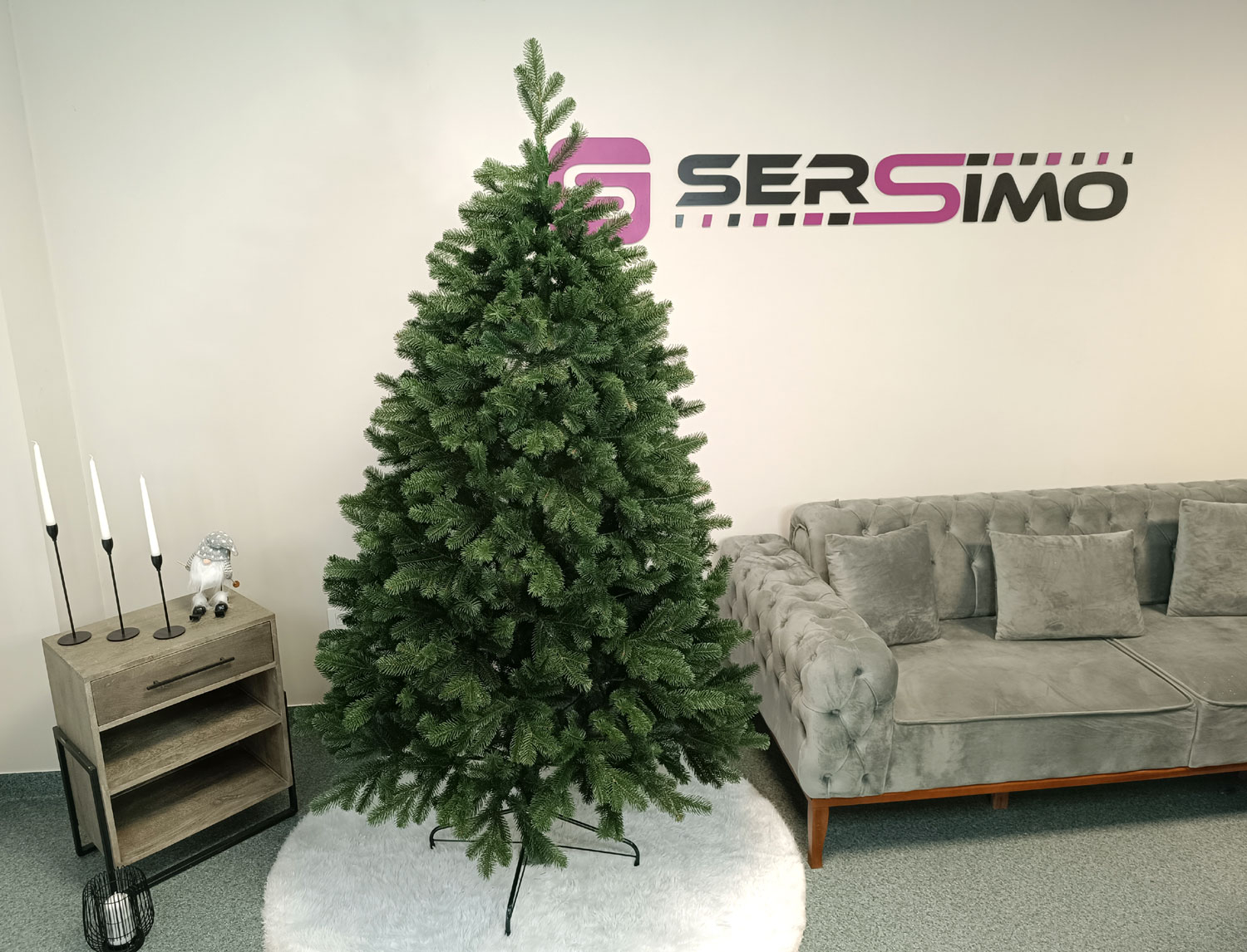 Imagine reala de prezentare pentru modelul Kovalivska verde, varianta 210cm Acesti brazi au un aspect ultra-realist si sunt greu de distins in comparatie cu cei naturali. Ramurile lor sunt dens stratificate si mentin toate decoratiunile de Craciun la inaltime. Ramurile arata foarte bine chiar si fara decoratiuni, sunt realizati din materiale calitative si ating cele inalte standarde de siguranta ale Uniunii Europene.Ramurile ramificate permit modelarea si impodobirea acestuia dupa preferintele fiecaruia. Pomii pot fi rapid ansamblati si dezansamblati, sunt usor de intretinut si sigur va vor face casa sa radieze de frumusete si a spirit de Craciun.Bradul este format din crengi care pot fi modelate si aranjate. Se poate monta in cca. 30 minute si este practic, ecologic si durabil. Este un brad foarte bogat, cu ramuri ce imita foarte bine bradul natural atat prin culoare cat si prin forma/textura. Ramurile se pot strange foarte usor in jurul tulpinii, fiind compact si usor de depozitat. Suportul bradului este inclus Inaltimea totala a bradului (dimensiune masurata de la podea pana in varf, cu tot cu suport): 210cm Diametrul (latimea la baza in cel mai lat punct): 135cm Numarul total al ramificatiilor: 422 dintre care: Crengute 2D, material PVC: - Crengute 3D, material PE: 422 Suport inclus: metal Zapada: NU Alte decoratiuni: - Greutate (fara ambalaj): 13.5kg Dimensiune ambalaj carton: 32 x 29 x 118cm https://youtube.com/shorts/XzAnGNLp260Design exclusiv realizat de SERSIMO Market, fabricat in Ucraina