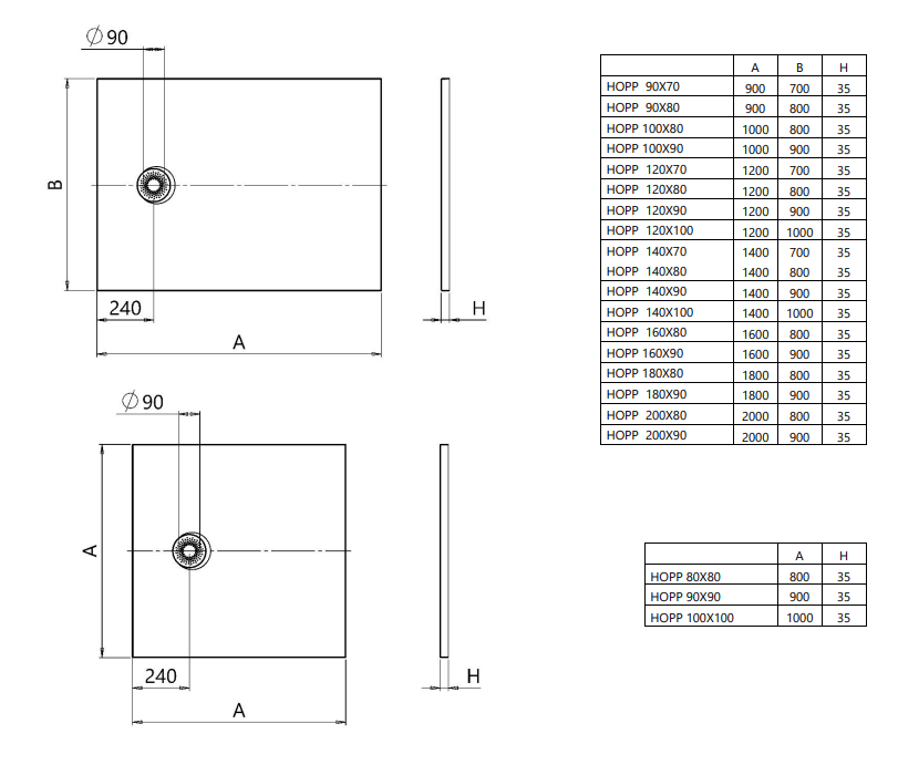 Cadita de dus dreptunghiulara, din marmura turnata, alba, 120x80x3.5 cm, KolpaSan Hopp