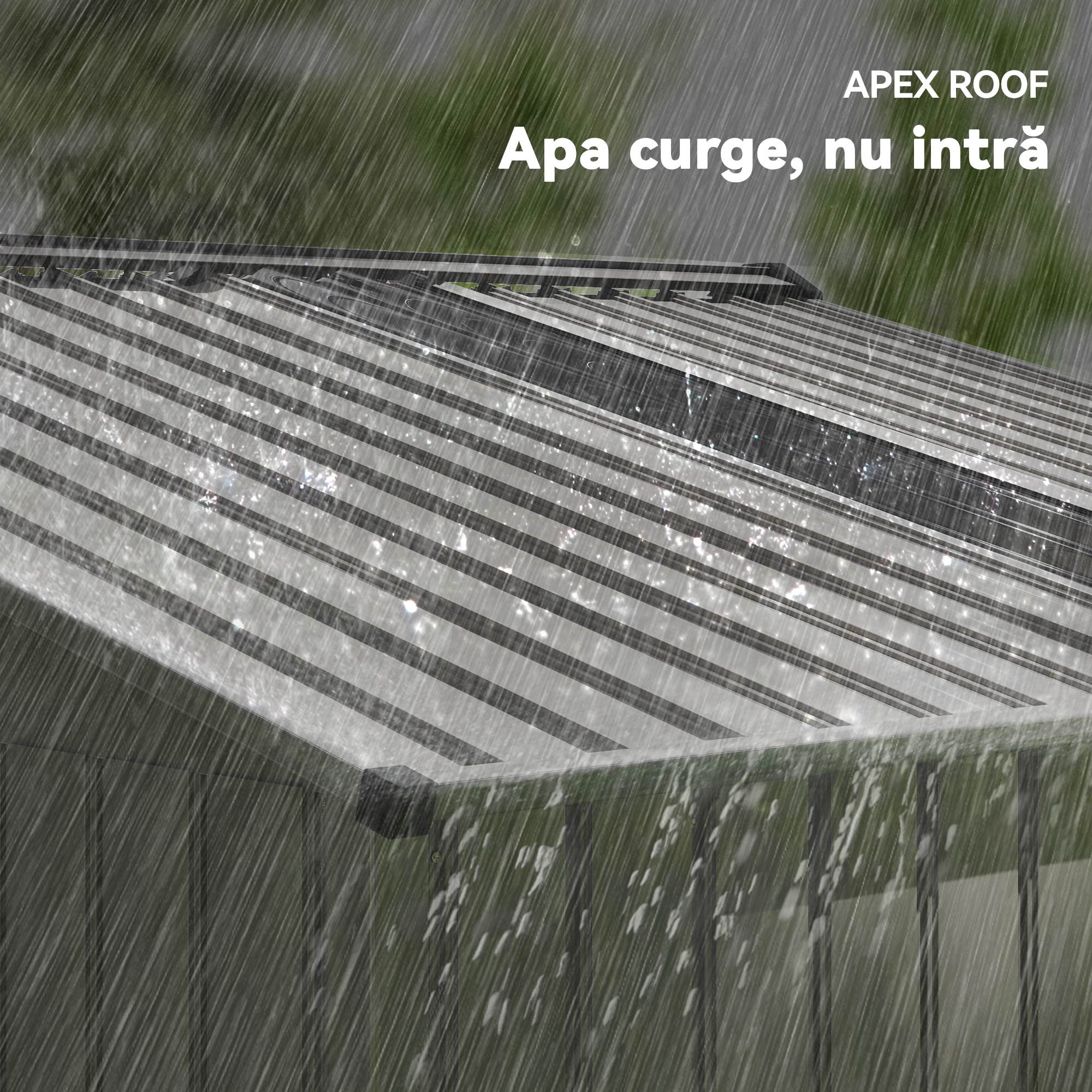 Daca sunteti in cautarea unei case de gradina spatioase, acest model de la [BRAND NAME] este ideal. Perfecta pentru organizarea uneltelor de gradinarit, bicicletelor si altor obiecte, este realizata din otel galvanizat. Kitul de baza de intarire (fara podea) permite amplasarea unor obiecte fara a intra in contact direct cu solul. Acoperisul inclinat previne acumularea apei. Dimensiunile generoase ale acestei case din metal o fac ideala pentru depozitarea inclusiv a utilajelor de lucru.