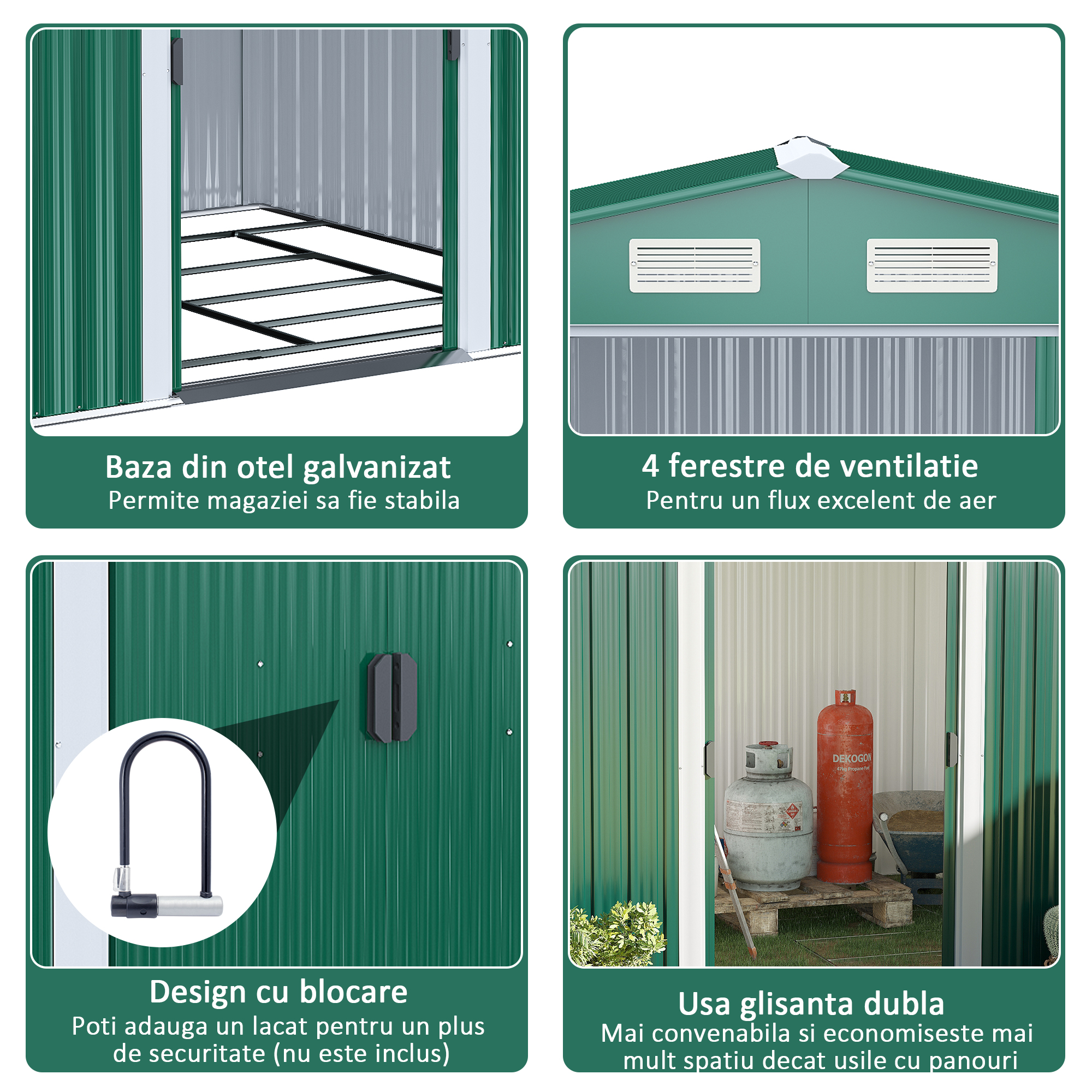 - SPAtIU EXTINS DE DEPOZITARE: O solutie ideala pentru depozitarea echipamentelor mari de gradinarit, mobilier de exterior sau biciclete.