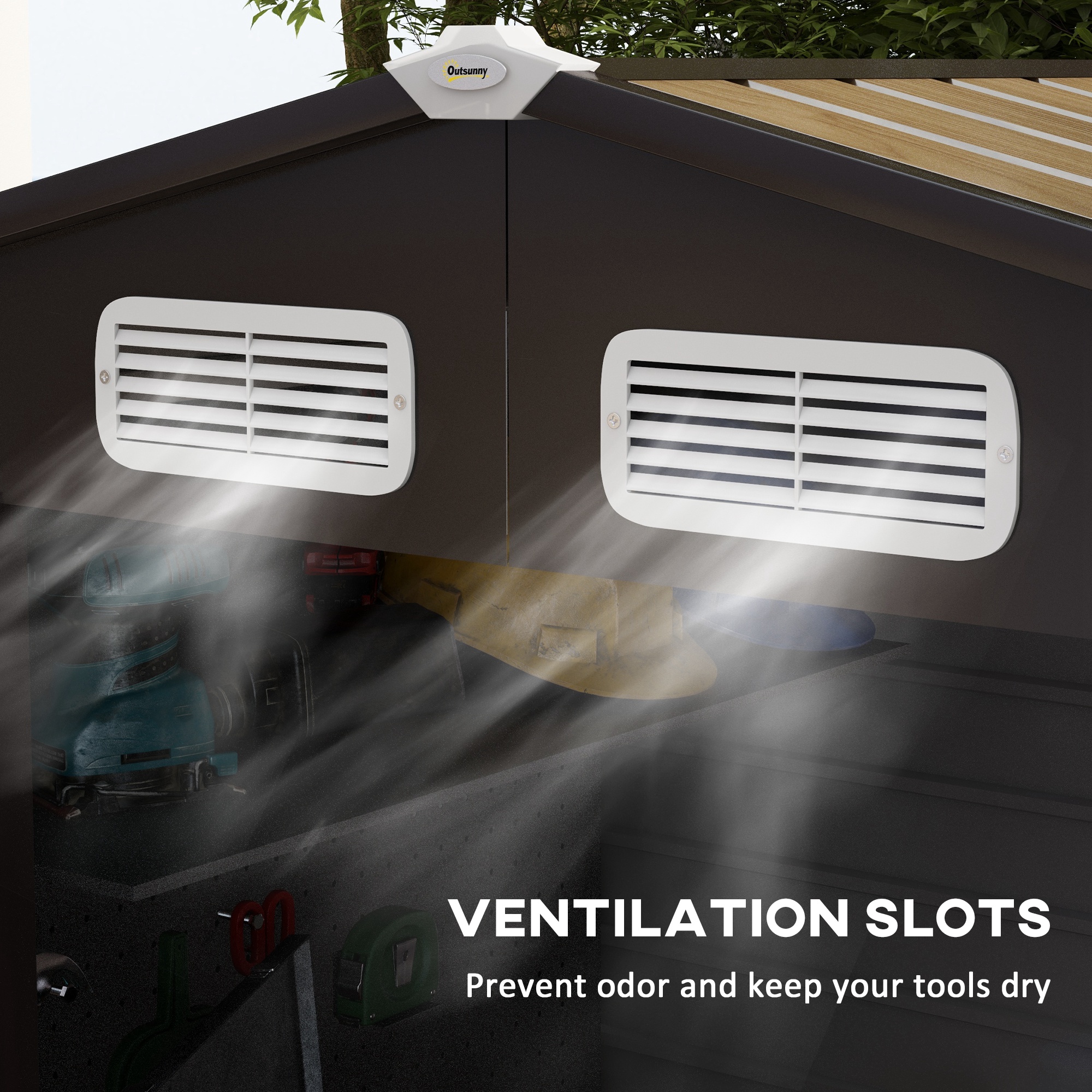 - CONSTRUCtIE REZISTENTa: Fabricat din otel galvanizat, acest spatiu de depozitare rezista la coroziune, ploaie si soare intens. Structura sa solida garanteaza utilizare de lunga durata, indiferent de sezon.