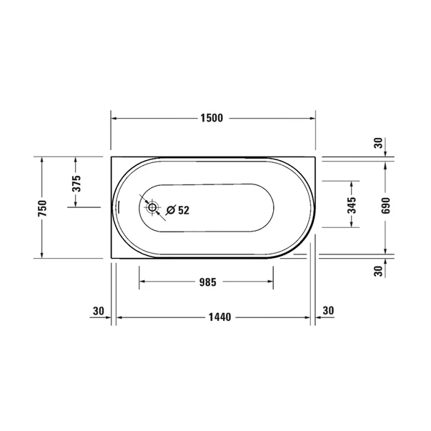 Cada freestanding Duravit DuraSenja 150x75 cm finisaj alb stanga lipita de perete, BTW